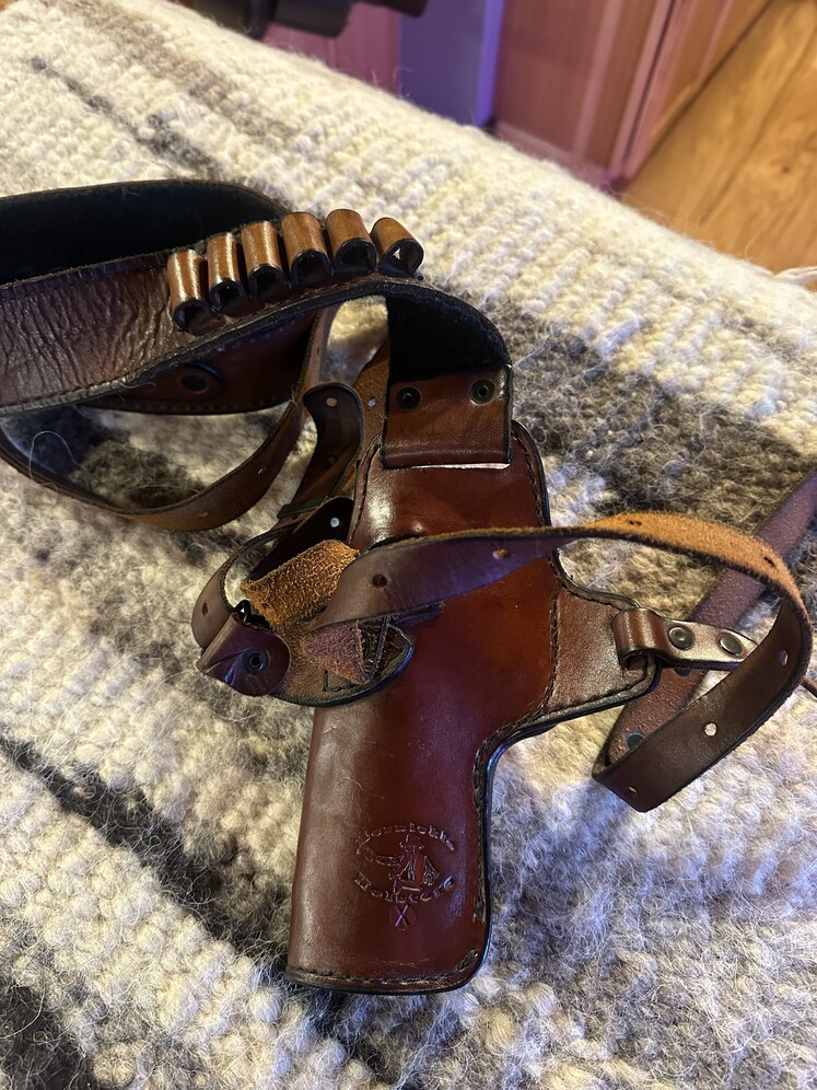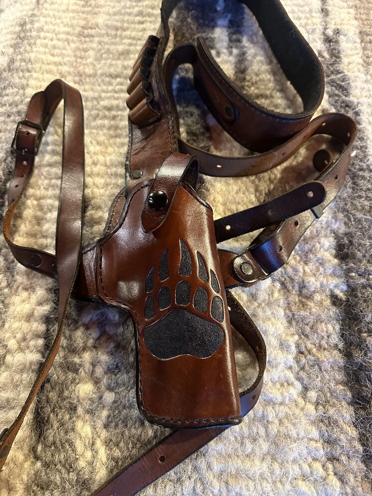 Custom mernickle leather shoulder holster for smith and Wesson x frame revolvers. I had it custom made for my 460 smith and Wesson magnum. Shell loops are for 460, 454 casull or 44 mag. With 4 inch/ 5 inch barrels. First frame revolvers. Excellent condition