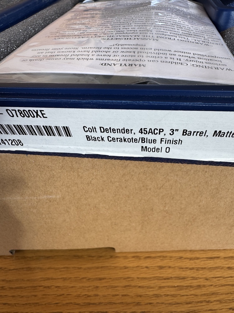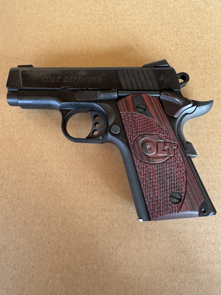 Colt Defender .45 Auto. 3" barrel, 7 round mag. Excellent condition. has fired 50 rounds. Factory box included. Not interested in trades.