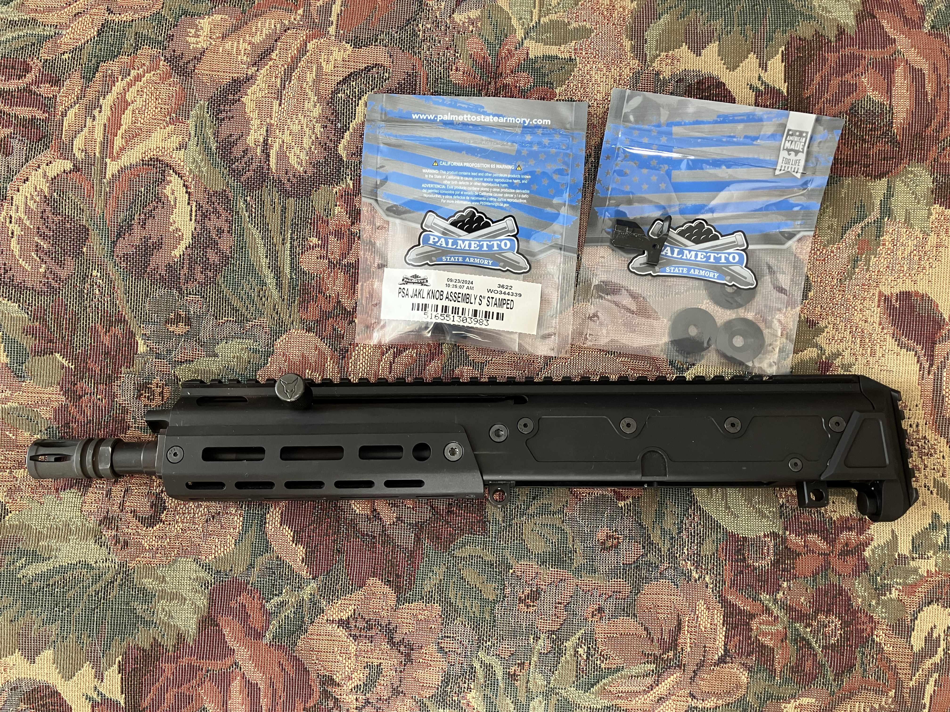 PSA Jakl .300 Blackout 8.5" barrel upper with extra gas regulator plug for supressed use, extra buffers, a bolt catch, and complete picatinny receiver cap. It's everything you need to set it up on your pistol or SBR lower. I have a about 200 rounds through it though I have carried it a lot places. I have only shot supers and only shot unsuppressed. It has never malfunctioned, even in -30 cold. I am selling it because I have some very nice DI guns and while I like the Jakl, I like my DIs better. 600, negotiable, open to full or partial trades, especially 556/.300/.308/.270 ammo; 9mm or .22 Glocks, Beretta 92s, Leupold M8 or FX3 scopes, or even a 10/22.