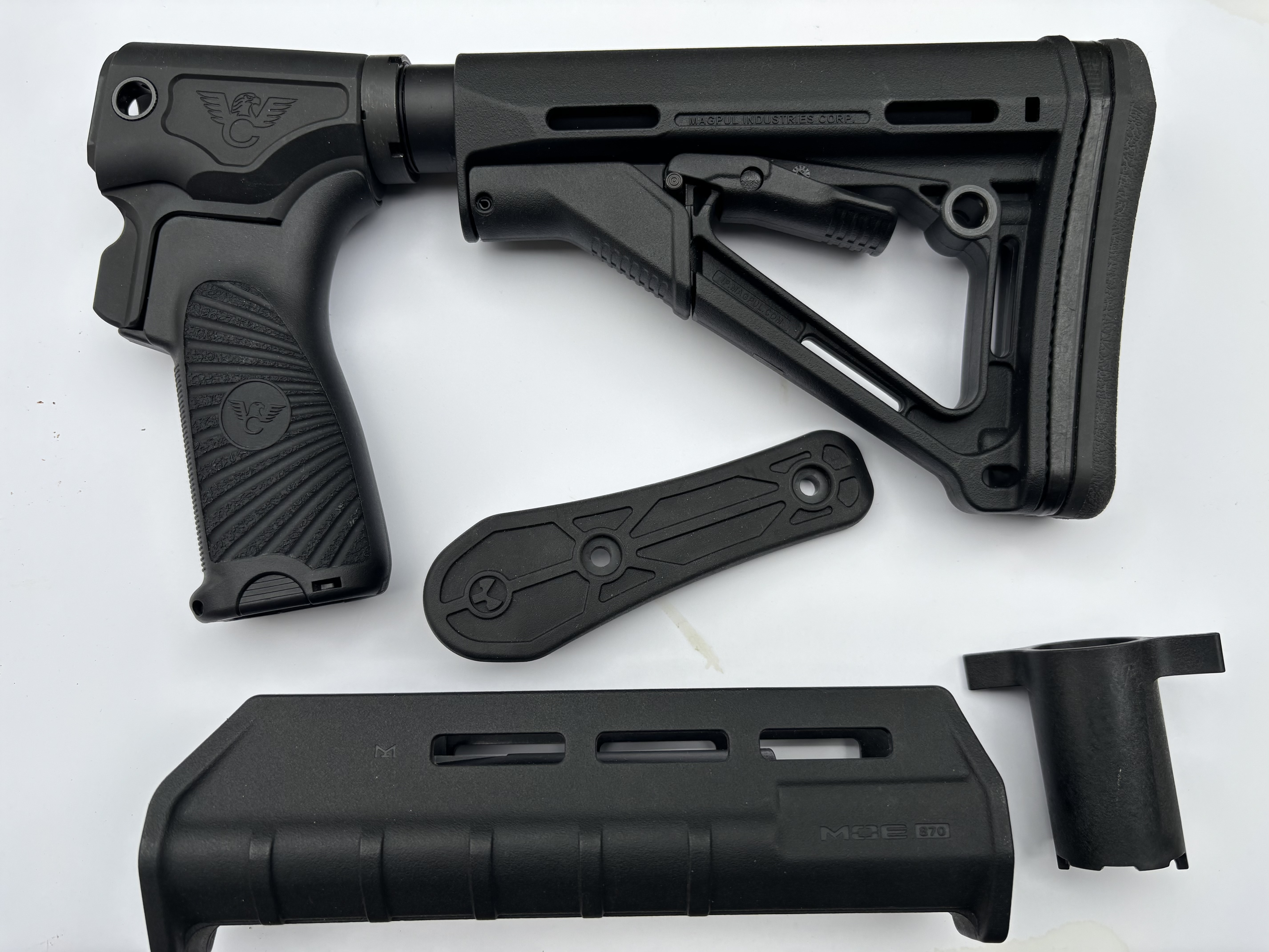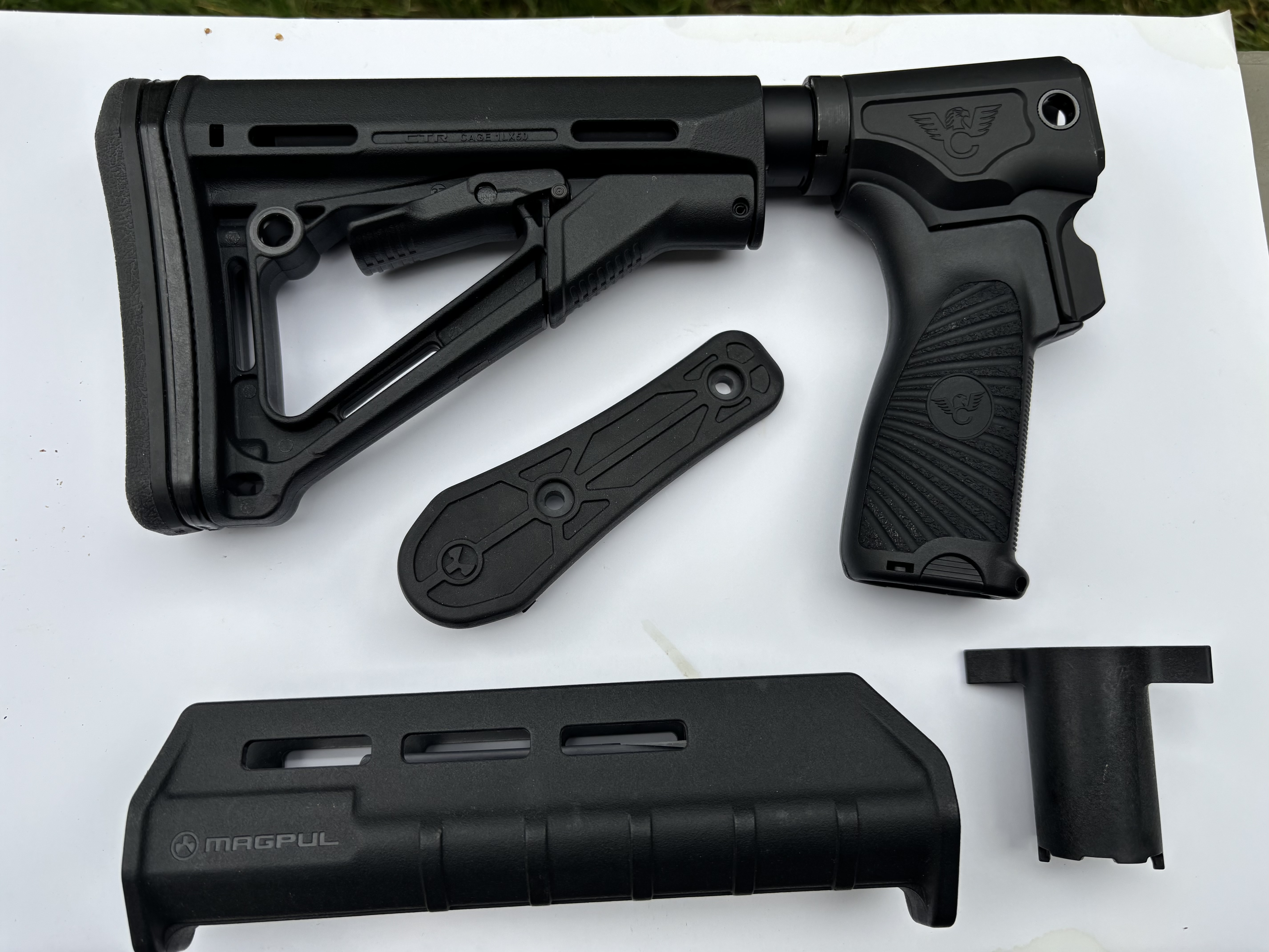 Remington 870 /Wilson combat coupler and milspeck tube/ /wilson combat starburst grip /ajustable magpul ctr stock /magpul for grip /limbsaver butt pad.This Remington 870 stock is a pleasure to shoot and I feel it reduces recoil dramatically. I had it on a Remington tac14 and what a fit. ended up telling the tac 14. also looks good on a 18. barrel
