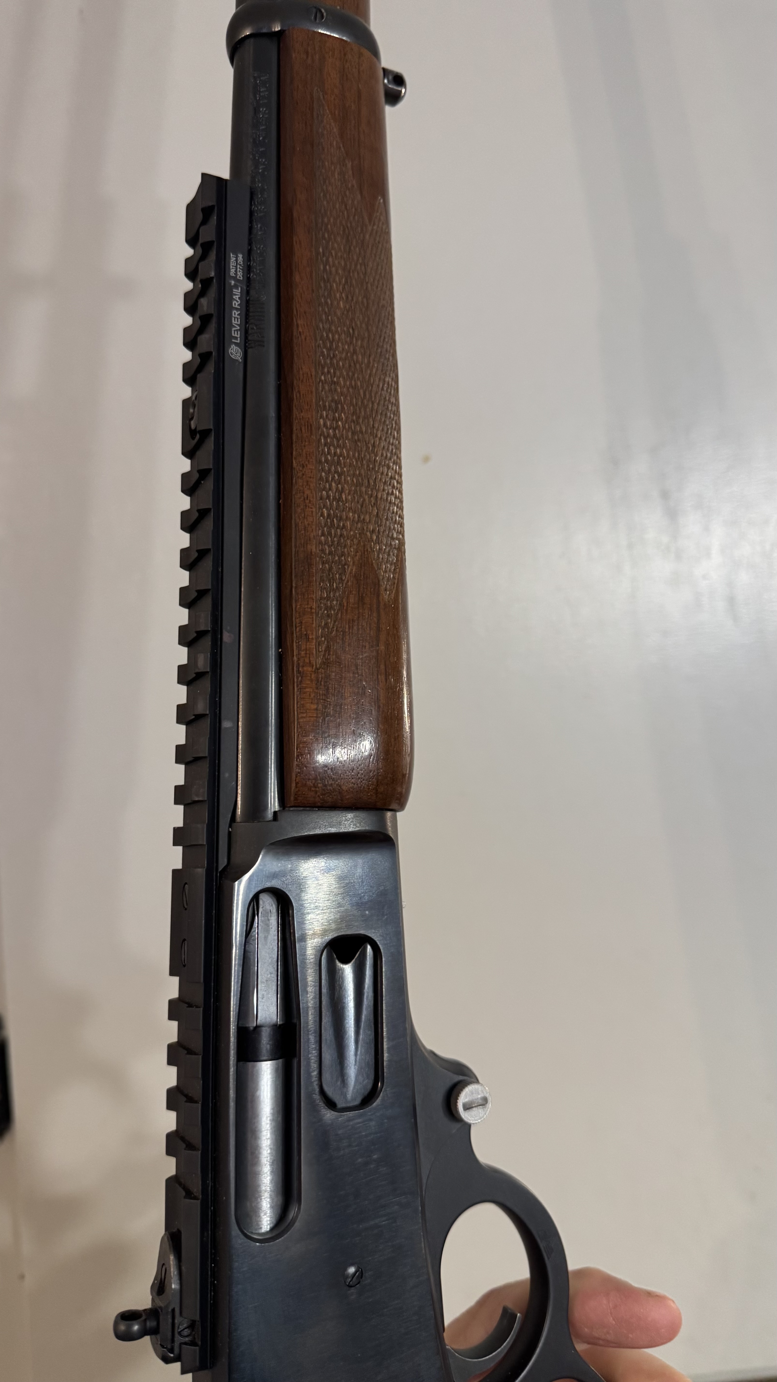 Marlin 336 JM stamped 35 Remington, excellent condition. Comes with a “Ranger Point Precision” modified loop, a picatinny “XS Lever Rail” with XS ghost ring sights, and a box of ammunition.