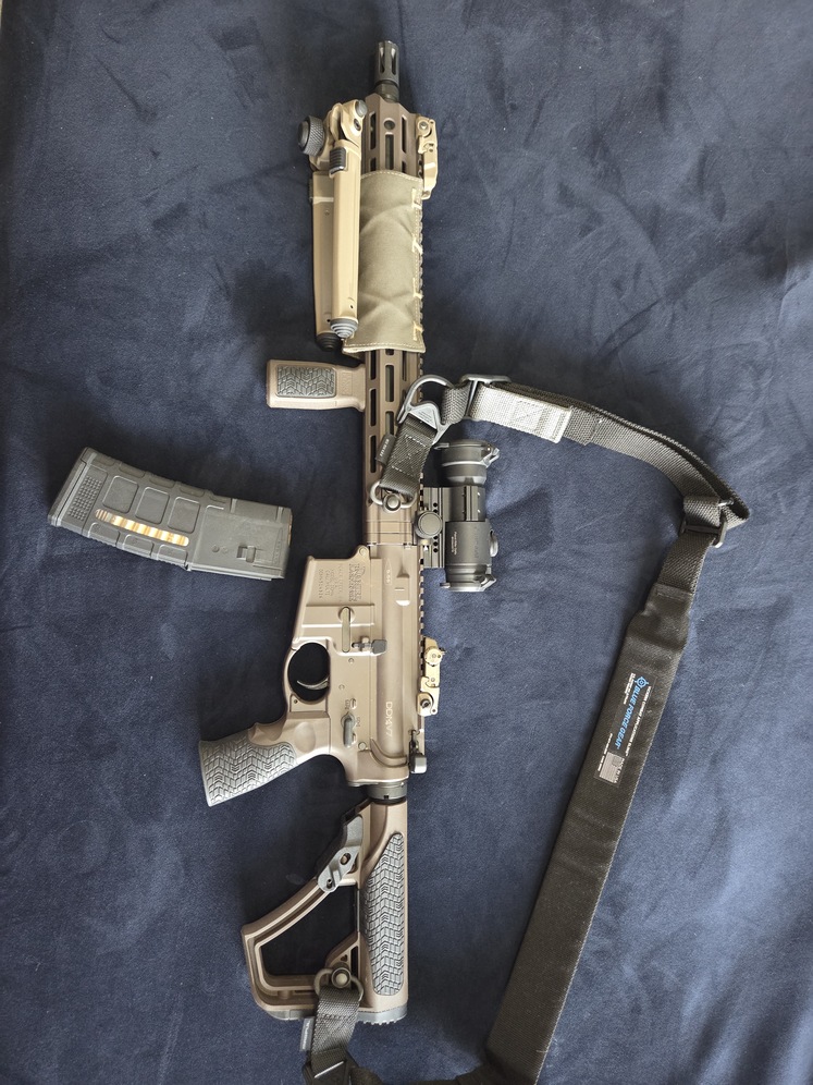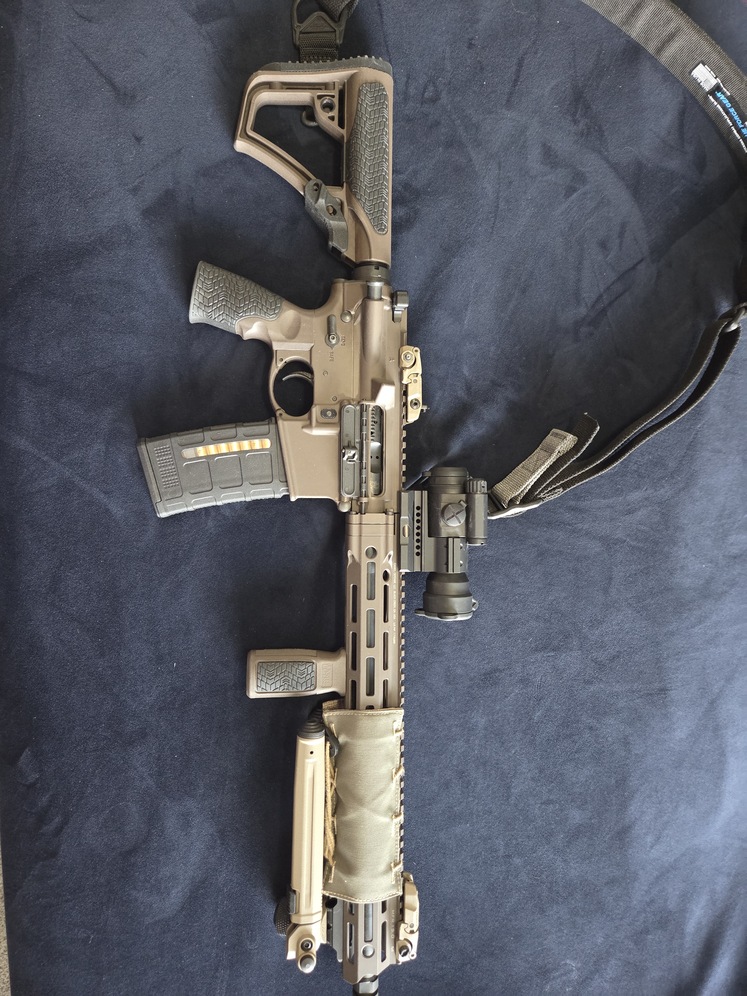 DDM4 V7 AR15 style firearm, includes pictured accessories as well as 4 total magazines and 5.56 ammo - Vickers combat applications sling, Aimpoint Scope, Magpul MBUS sights and tripod,
