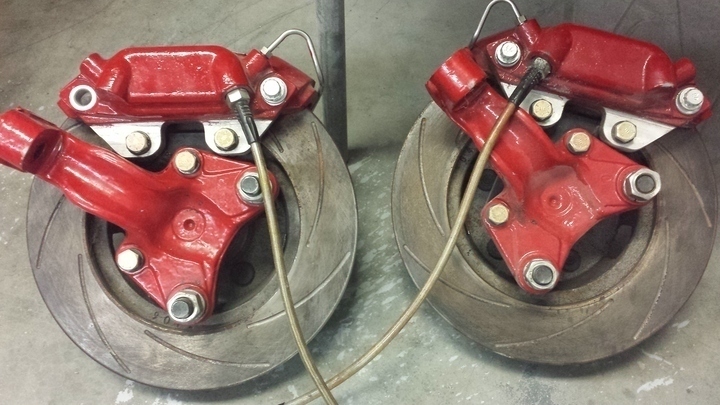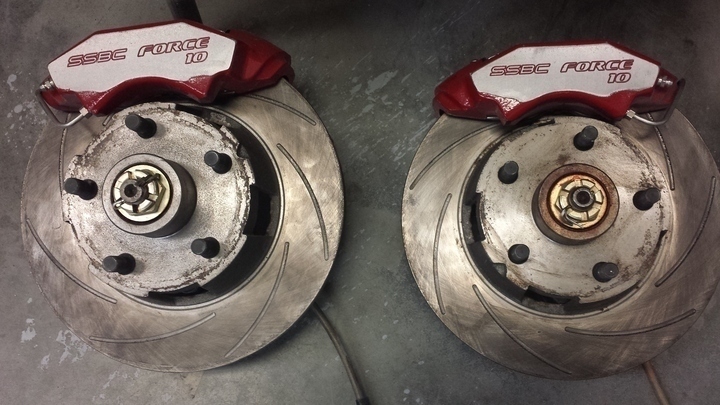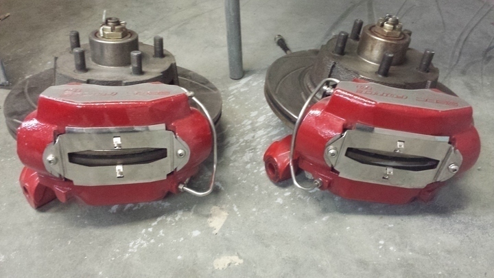 These are ssbc aftermarket disk brakes for a 1970 challenger.only about 5 to 10 miles on them so they are like new.I went with a whole new front end that had brakes allready included.They are 11inch slotted rotors and 4 piston calipers. You can text me