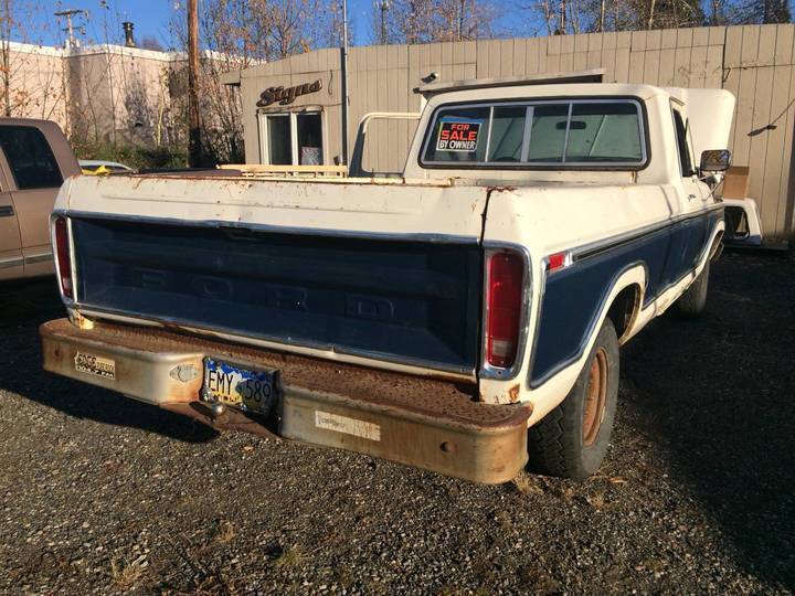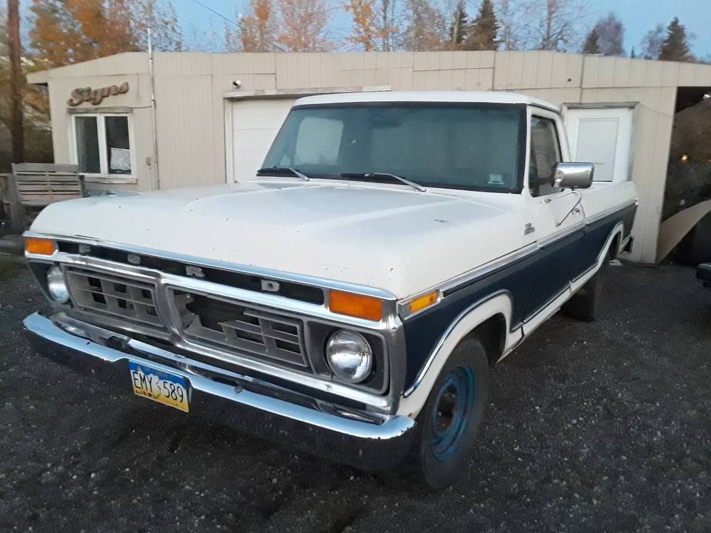 FAIRLY STRAIGHT! WHITE AND BLUE WITH CHROME. 2WD, 400M, C6 AUTO TRANS, HEADERS, EXTRA RANGER XLT DASH, RUNS, NEEDS SOME WORK (INTERIOR & STEERING), ALL INSIDE AND OUTSIDE LIGHTS WORK BESIDES RIGHT FRONT AMBER LIGHT, HEATER WORKS FINE, NEW BRAKE MASTER CYLINDER, NEW STARTER AND STARTER SOLENOID. CLEAN TITLE. KBB ~$3500, YOURS FOR $1775! CALL OR TEXT 907-888-9ONE79 NEED ROOM FOR A BIGGER TRUCK!