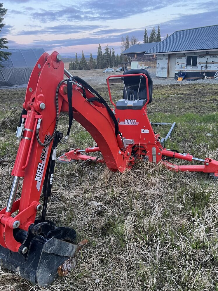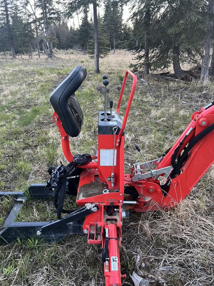 Kioti KB2475L attachment with hydraulic thumb. Comes with underbelly attachment bracket and tractor bracket. Used lightly. Very good condition. For the next 7-10 days, this is in Anchorage getting serviced at the dealership. We could arrange for it to be picked up there. The tractor bracket is still attached to the tractor. Cash only.