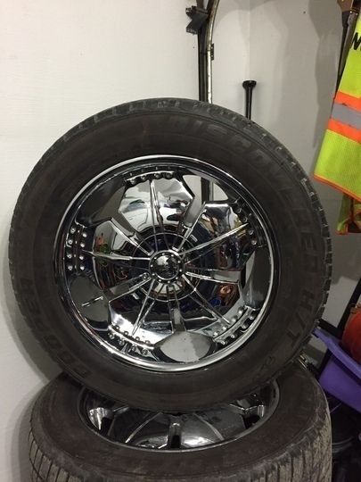 Cooper Discovery H/T plus 275/55R20 90% tread On 20" Devino chrome rims. 6 lug pattern off '06 Ford F-150. 6x135 pattern. set of 4 $750 obo, this would be a great xmas present for his/her SUV or pickup