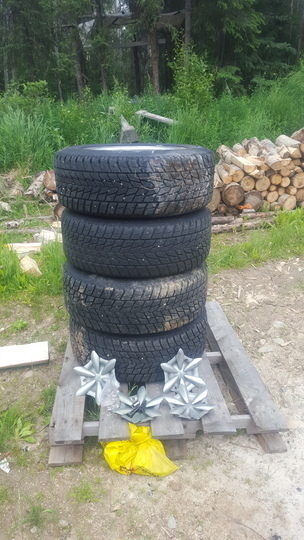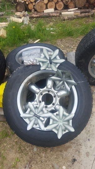 .4 GMC/Chevy rims will fit 1500 trucks. The tires are Toyo Open Country GO3. 3 of the 4 tires are good, the 4th tire the steel belt ruptured and is damaged beyond repair. Included are the lug nuts, security lug nuts and the security lug nut tool. willing to trade for 8 hole dodge ram 2500 rims with or without tires