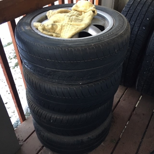 This wheel set is off an 1999 Audi A4 . 2 of the tires are not in good shape and 2 are ok. Mainly selling for the rims. The tires are P205 55R16.