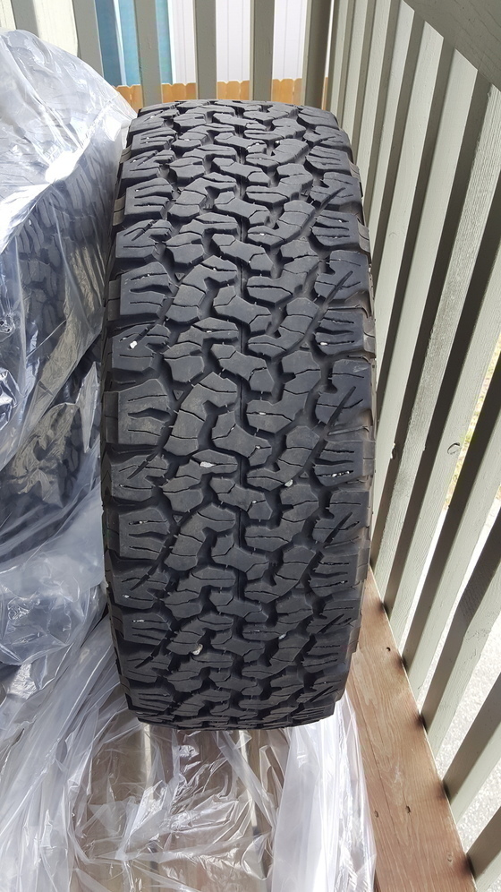 BF Goodrich All Terrain T/A KO2, LT 285/70 R 17, load rating "C". Black wall, set of five tires that are off of a Jeep Wranger Rubicon. Very good condition still have the little nubs on them from the manufacturer. $750 firm.