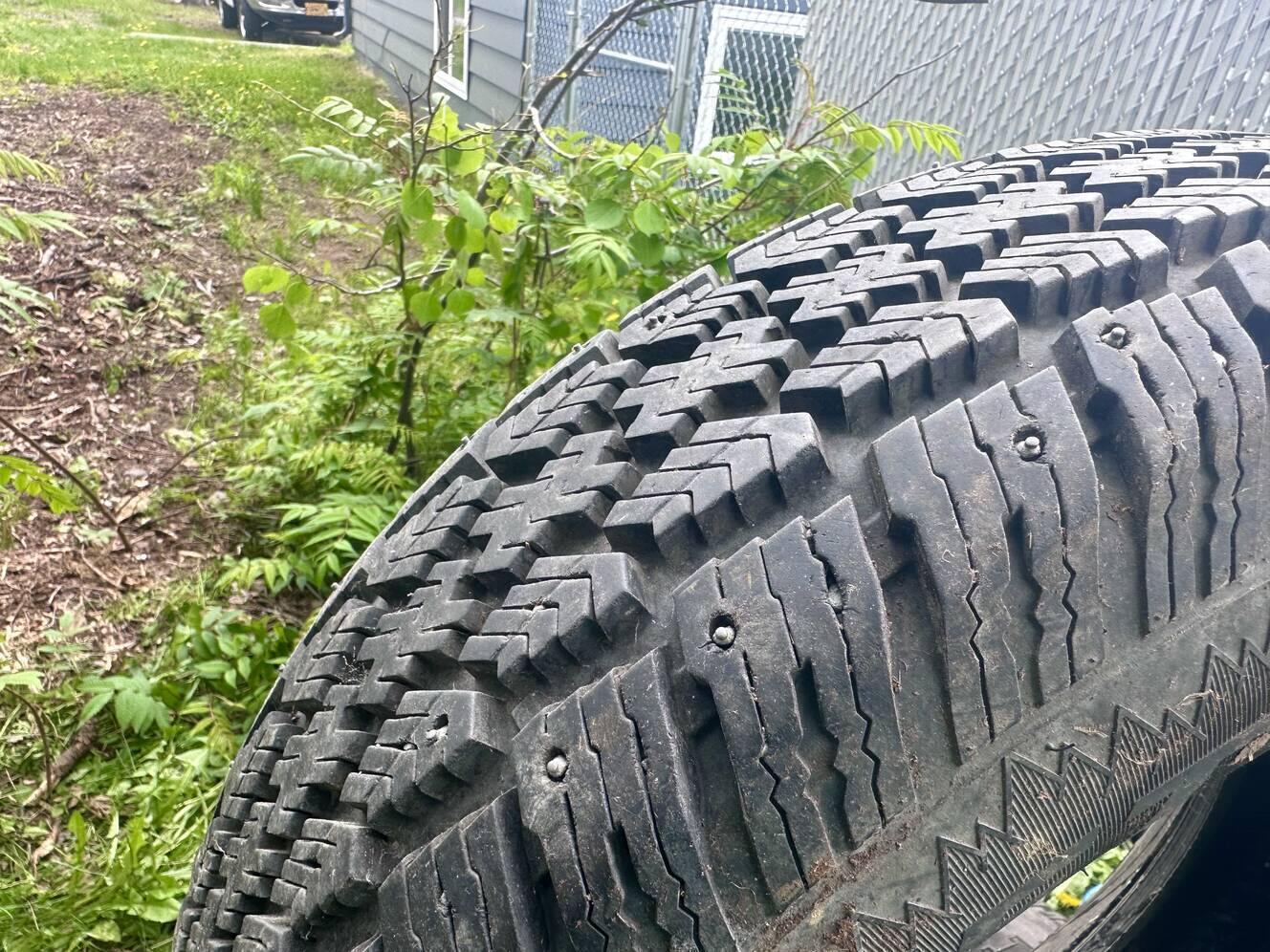 Set of 4 Mastercraft Glacier Grip winter tires 235/75R15. Two tires have studs, and two do not have studs. All four have deep notched grooves in the tread for winter driving. These tires came with the Ford F150 that I bought. The tires that are already on the truck are similar to these and work great during winter. So I've never used this extra set of tires that I'm selling. Feel free to text or email with questions, to view, or buy them. Thanks!