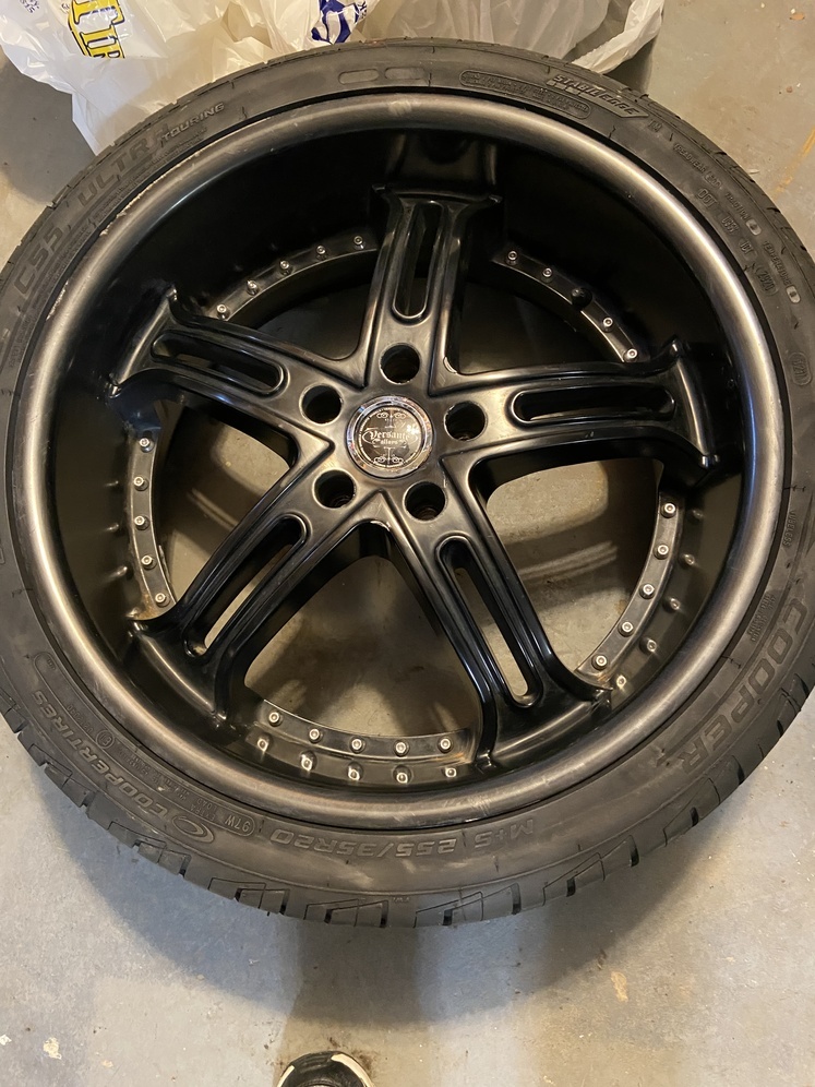 Cooper CS5 Ultra tires mounted on black Versante rims. Were on a 2012 Ford Mustang. Tires are new! Tire size 255/35R20. Bolt pattern 5x139.7. One rim is missing it’s center cap. $600.00 OBO.