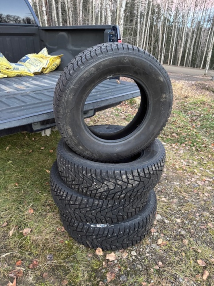 4x like new Hankook Winter I Pike - X studded tires in 245/70/17 size. I would estimate these have less than 1,000 miles of wear. I used them for about half the winter on my truck before major mechanical issues took it out of commission.