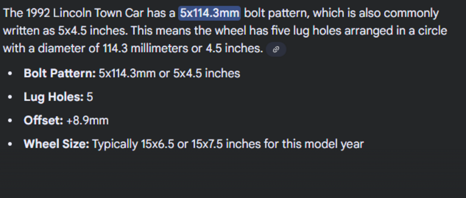 These came off of a 1992 Lincoln Town Car Executive. The wheels are in great condition, just slightly dirty. The wheels do also come with cooper tires on. There is still at least 1, maybe 2 seasons worth of life left in the rubber. Asking $600.00. Cash. No trades. No checks. Please. Thank you for taking the time to look over my post.