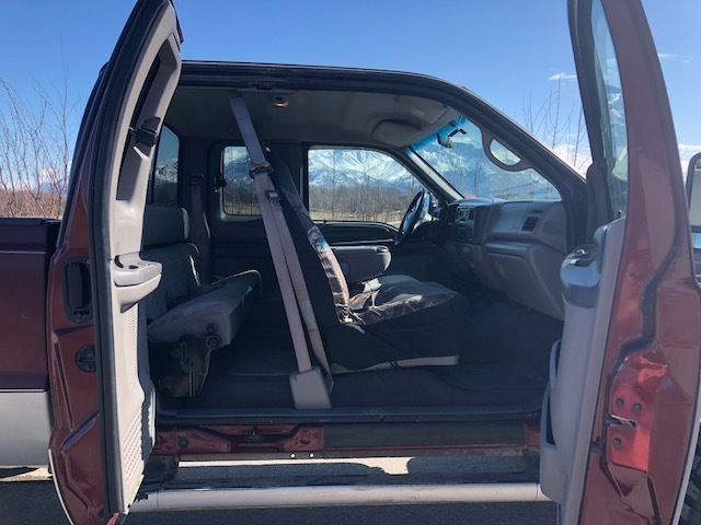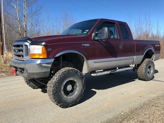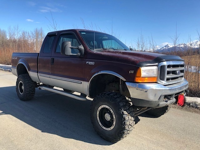 99' F-250 Extended cab with 6" Lift, short bed, V10 with 149k miles. Runs and tows great with lots of power. 5K miles on 6" Skyjacker lift, 35" Nitto Mud Grappler tires, and Flowmaster 50 series quiet dual exhaust. Crack in windshield. Brush marks on clear coat. We built it to drive down a country road to our cabin and dip netting on the Kenai. Great Alaska truck.