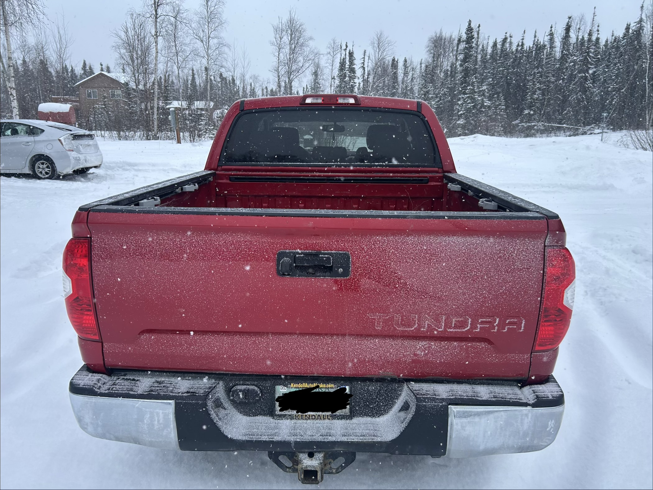 2017 Toyota Tundra limited crewmax. It has the 5.7 liter engine, leather heated seats, four wheel drive, back up camera, and roll down rear window. It has 125675 miles on it right now but I will be driving it occasionally so milage will go up. It has several cracks in the windshield but I will have a new windshield installed with a full price offer. I love this truck and don’t want to sell it, but life circumstances require me to make some changes. It has a clean title but I was sideswiped in it and got a dent in a parking garage. All damage was professionally repaired