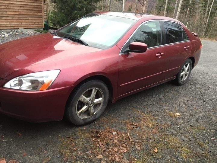 Selling 2003 Honda Accord with about 133k miles. Ex model with fwd, sunroof and cloth interior. Tires are in great shape and are holed for studs, does great without the studs, along with built in aux cord and iPhone 5 charger. Gets great gas mileage. Fresh oil change. Call or text anytime. Ask for more pics. interior has no tips good condition