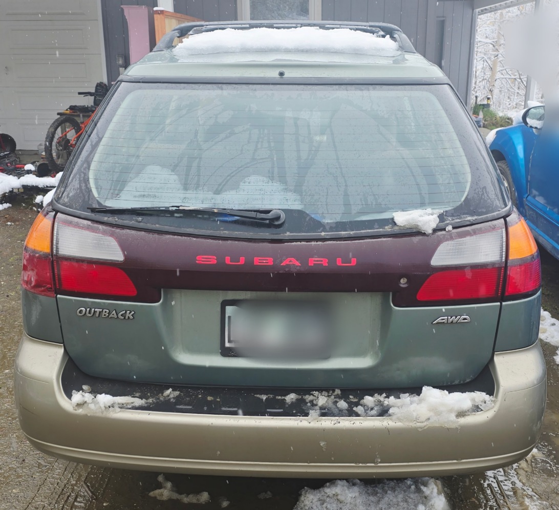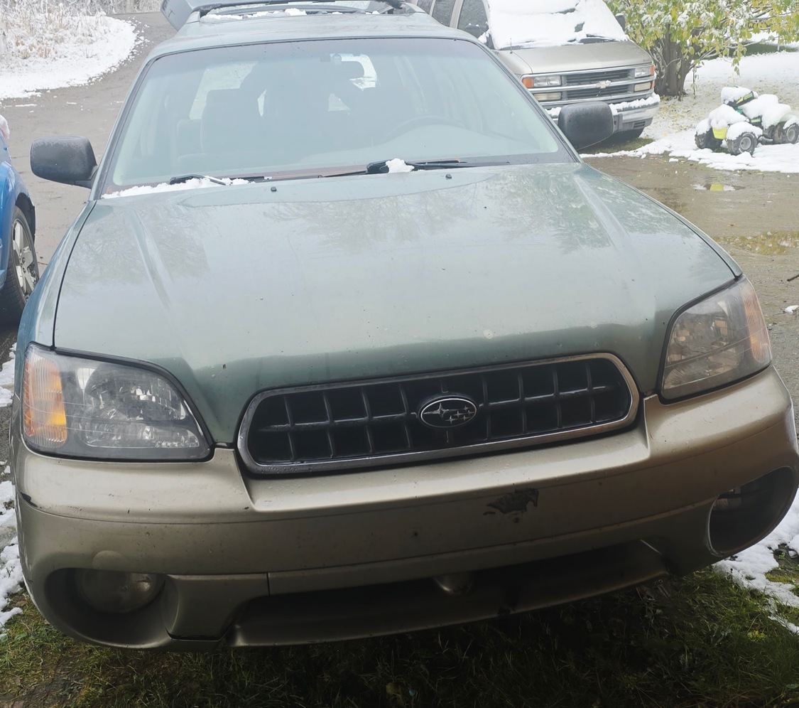 2004 Subaru Outback Title in hand and Z Plates to boot! This is a well taken care of and maintained vehicle over the years from non smoking owners. All vehicle maintenance records included. This vehicle needs work though! The good: great custom cut weather tough mats in front footwells and in station wagon area, no major rips or tears or damage inside. Pioneer single din & Polk Audio speakers professionally installed. Drivers seat is heated passenger i believe came disconnected somewhere. Automatic door locks and windows ( drivers came off track). Woodgrain interior trim. No transmission issues, THIS VEHICLE NEEDS NEW WHEEL BEARINGS!!! It has been my daily driver until just recently due to bearings making loud noise but runs and drives. Has a lifter that needs repaired and gives a bit of a tick but no rods knocking or other engine issues. Brakes are ok. Heater performs double duty and will keep you warm all winter. Minor body damage see photo. No other major mechanical issues.