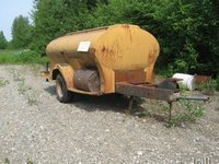 1400 gallon Clough fuel trailer. Ex military with 3 compartments. Tank is sound and all valves work. No pump. Two side compartments for 55 gallon drums. Great for fueling equipment or a mining outfit. Pintle hitch. $1800.