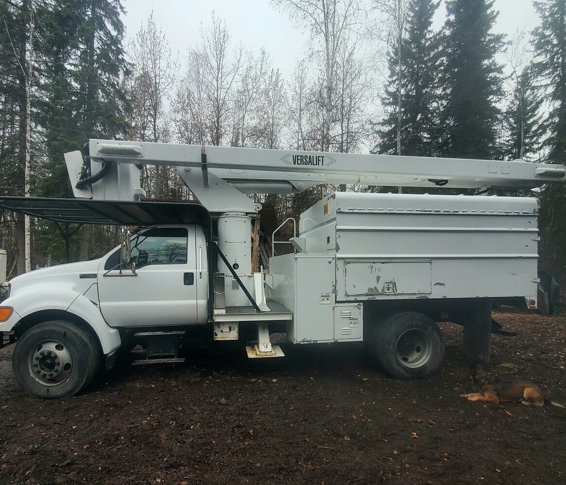 2000 Ford F750 Versalift boom Forestry dump body Current DOT inspection