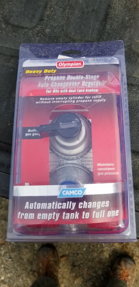 Camco Automatic Changeover 2-Stage Propane Regulator for Dual Propane Tanks Retail $55, new never used. Features: The Camco Propane Double-Stage Auto-Changeover Regulator is for RVs with dual propane tank hookups. It maintains a constant gas pressure and automatically changes from the empty tank to the full one. It allows for the removal of the empty cylinder for refill without interrupting the propane supply. The inlet is a 1/4" SAE inverted flare and the outlet is a 3/8" NPT female. Automatically switches from primary to reserve tank when primary is empty Built-in red/green gas gauge indicates when a cylinder is empty Primary cylinder 210,000 BTU/hr capacity; Reserve cylinder 130,000 BTU/hr Double stage design maintains constant gas pressure under changing demand and conditions Located in Ninilchik, AK