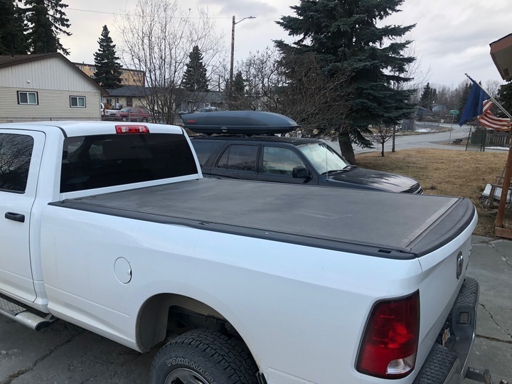 I have a very nice hard sided tonneau cover that flips up and out of the way for loading wheelers or snowmachines. Made by Bakflip, 6 roblees sell them. This tonneau cover fits 2003-2015 dodge rams with an 8' bed. Sell for over $1k new, I am asking $500 or trade for guns, 3 wheeler or fan cooled snowgo.