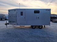 New 22ft 4 place drive on Snowmachine Trailer, With Salt/ snow shield, 4 tie down bars for skis, Rear ramp slides in. On 12 inch tires, with Spare tire mount. LED Lights. ...