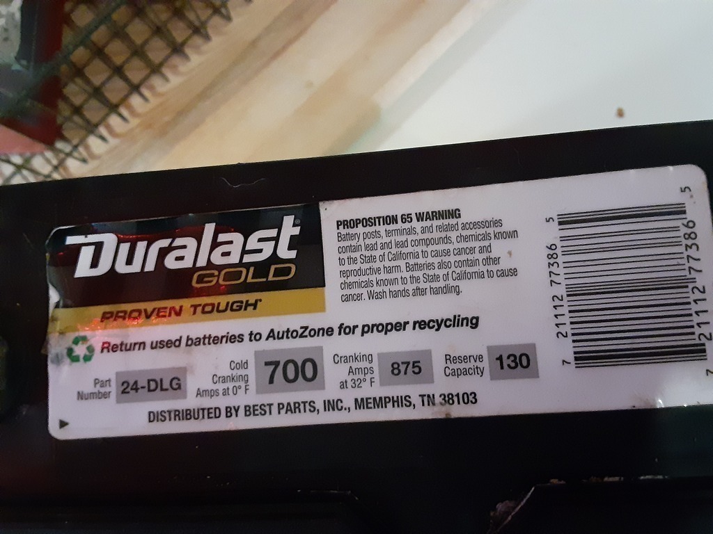 Only been used for about a month. In exellent condition 700 cold cranking amps 875 regular cranking amps Reaerve capacity 130