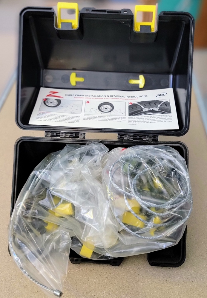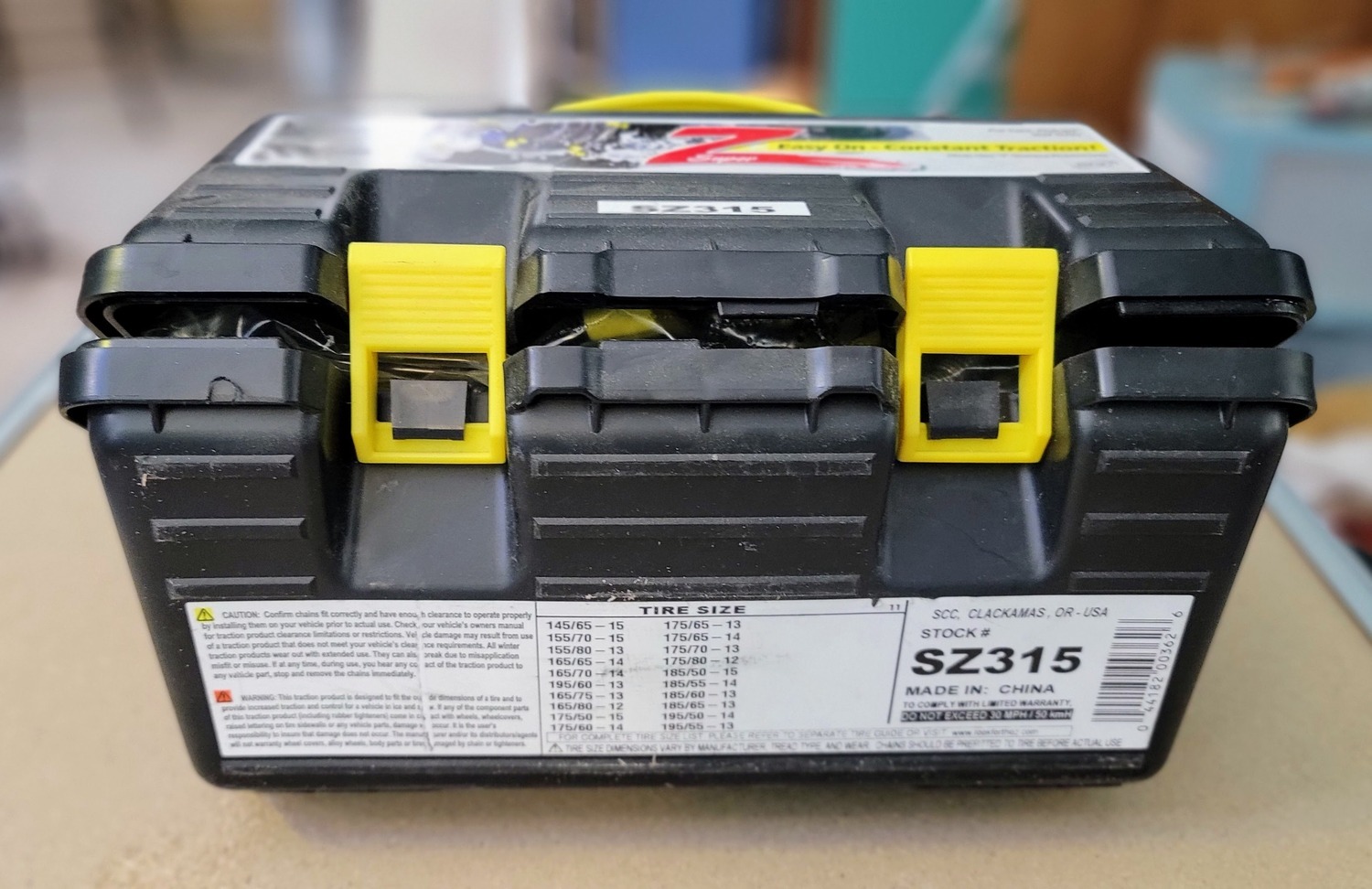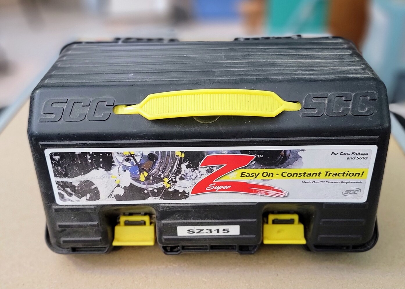 SCC Super Z6 tire chains – never used. Model: SZ315 For cars, pickups, and SUVs Easy on / low clearance design Comes in original case Condition: Original packaging, wrapped but no cardboard box Clean and complete set $60 OBO
