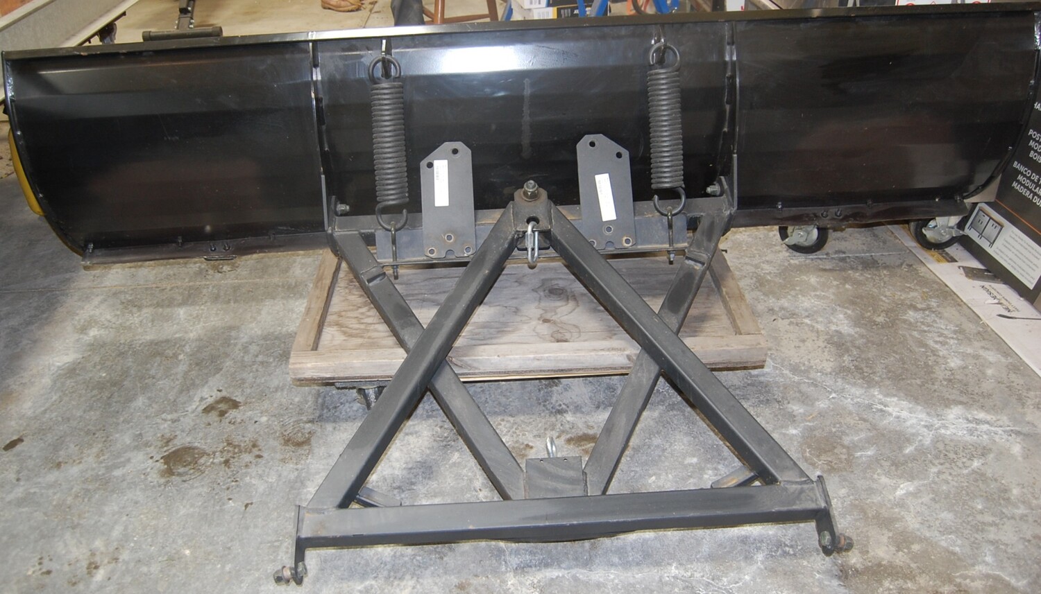 This is a used snow plough blade. In good condition. All parts for attachment are included. The winch is not included.