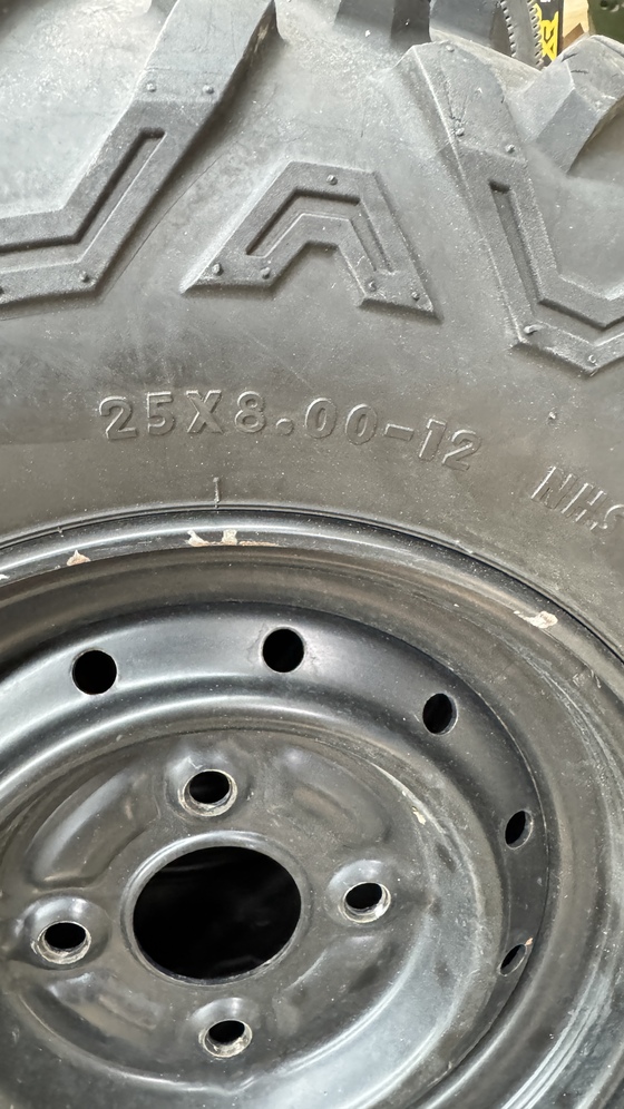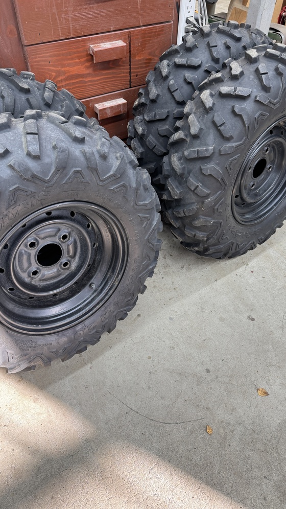 Big Horn Tires and rims (2 each 25x10.00-12) (2 each25x8.00-12). Like new condition. Sold the ATV no longer needed. Texting me is the best way to reach me