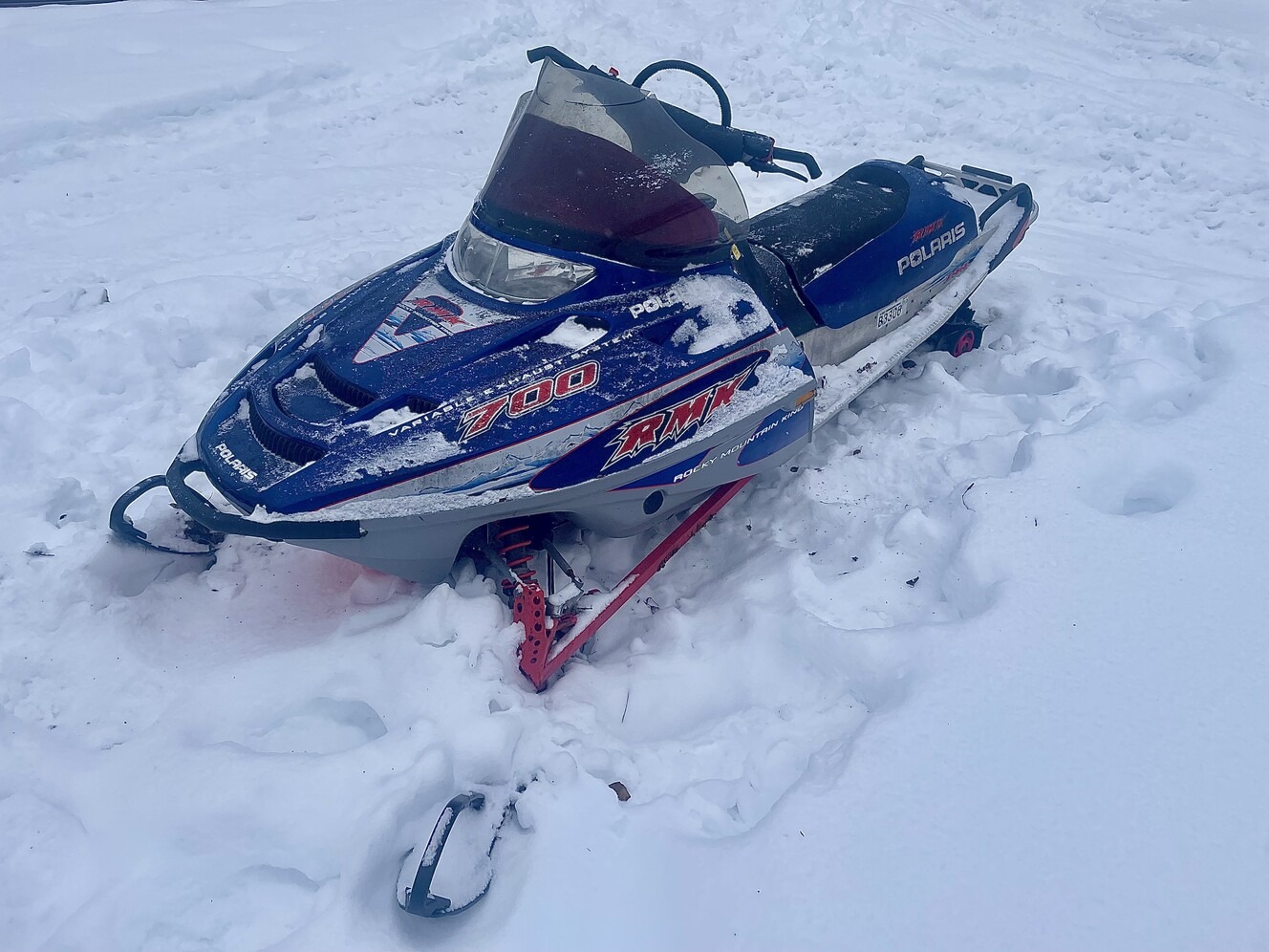 2003 Polaris RMK 700 - good machine, runs and drives great! Has been seating for a bit but starts up every time. Pull start, heated bars, lights work, and tons of life left on the track. Cracked wind shield but shouldn't be hard to order one. I have more photos of the machine like dashboard and the track I can send through text. Text me if you have any questions or concerns! Located in wasilla, 2300 cash obo.