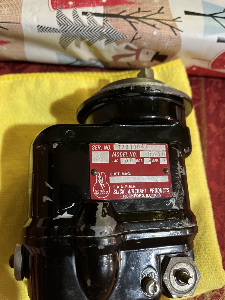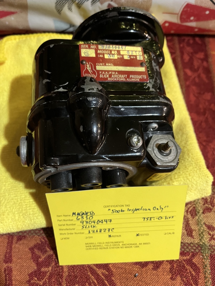 Slick Magneto 6310, removed from Continental IO-520 when replaced by Surefly & Bendix magnetos. Have 500 hr inspection w/documentation. Been on shelve as a spare. Plane for sale so magneto no longer needed. $1000/obo