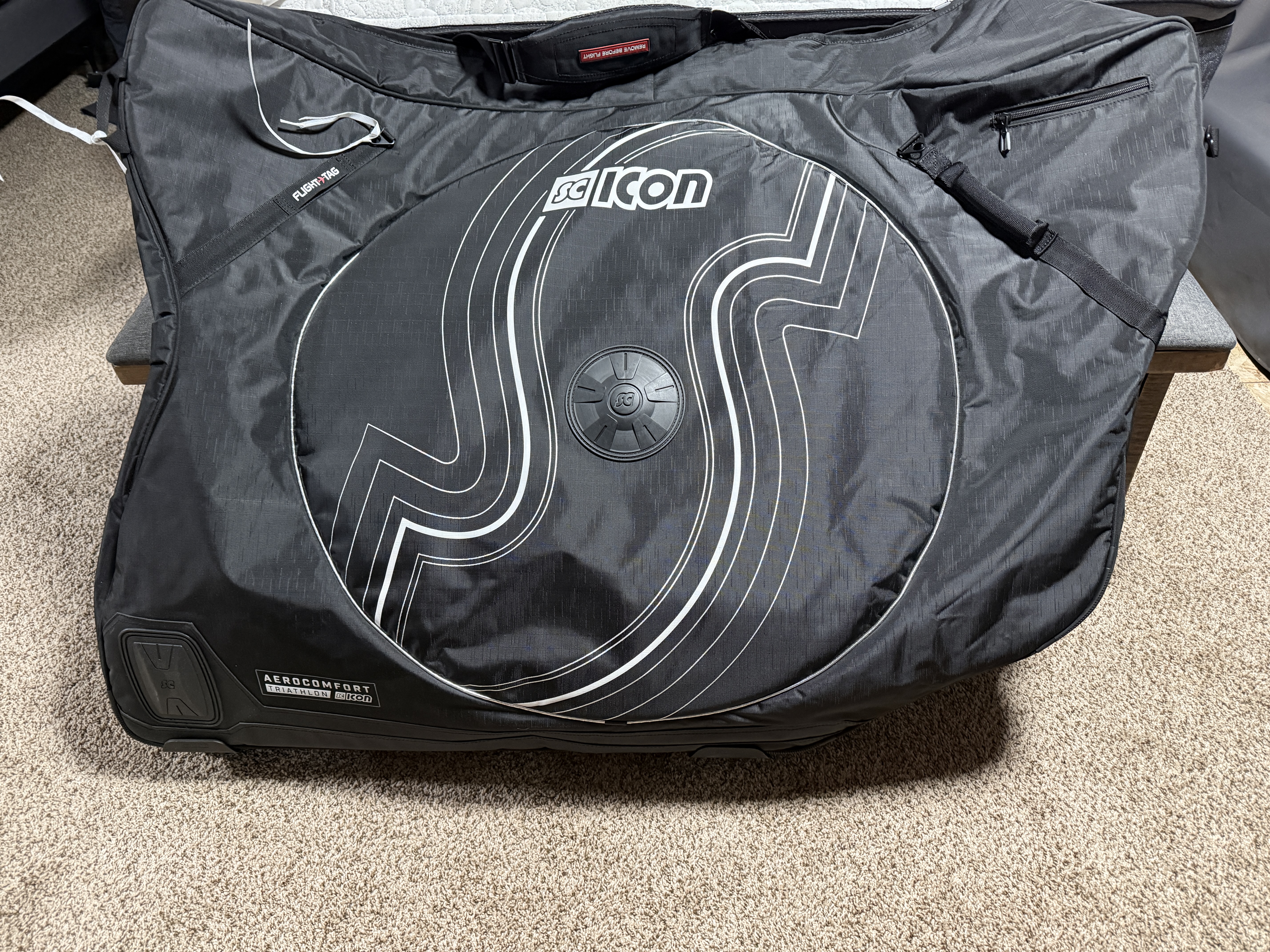 Like new only used once. Excellent bike bag for traveling with bike. I used it to bring a new bike from Portland to Anchorage. You only have to remove the wheels. The bag with bike rolls through airport effortlessly. All interior parts and bags are with the case. Excellent price.