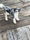 These are F1B Small Standard sized Labradoodles. The dam is a standard F1 silver/black Labradoodle and the sire is a carefully chosen AKC Small Standard tri color parti moyan Poodle. Both parents have been health tested and cleared. This litter should have an a ...