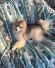 Gorgeous pomsky(Pomeranian/Siberian Husky) searching for her forever family. Silver sable, wooly, blue eyed and only 6-7lbs perfect toy sized. Sweet and social disposition and very smart girl that knows how to sit and shake and is potty trained. She gets a lot ...