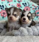 We call them pomchiskys! So unique with their Siberian markings in a Chihuahua sized package. Born and raised in our home so they are used to the hustle and bustle of everyday life. Mom is our beautiful full breed long haired 9lbs chihuahua and dad is a handsom ...