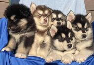 AKC registered litter of 9 purebred Alaska Malamute puppies. Currently 7 weeks old, dewormed and weaned. Ready for a new family just in time for cute Halloween pictures a ...