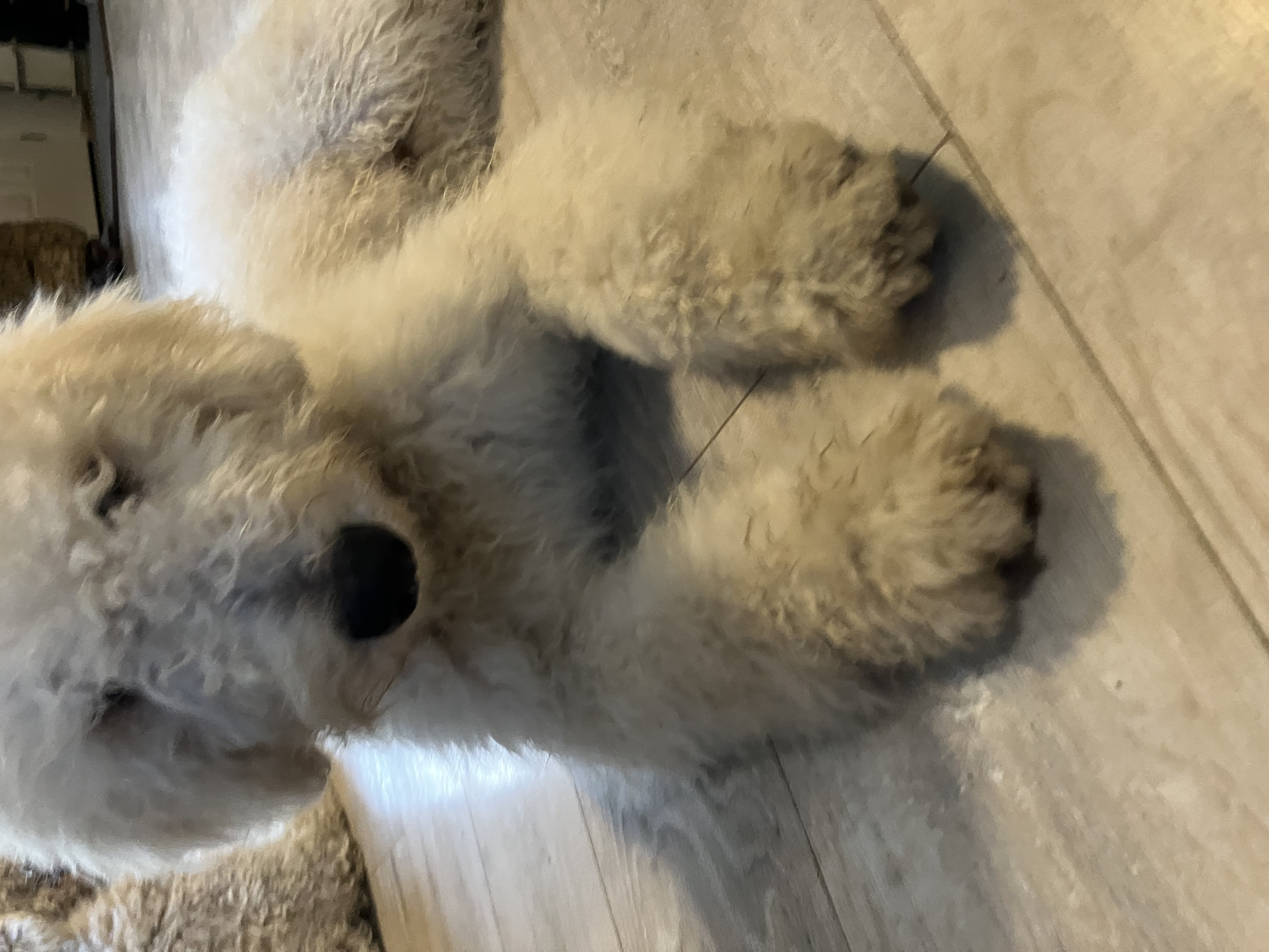 Playful Doodle puppies six months old males, potty trained friendly, ready for adaption $550 fee. Mom is half poodle half beagle color is brown weights 35 lbs. Papa standard poodle white color weights 60 lbs. Text Mila.