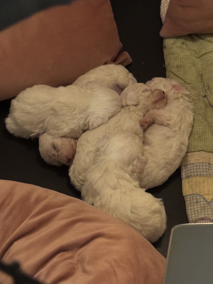 3 puppies left for sale from a litter of 5. 2 male and 1 female. Born August 14, 2025. Hypoallergenic. Mom is a toy poodle at 6 pounds and dad is a miniature poodle at 11 pounds. These puppies will grow around that size. They all received their first set of shots and deworm on September 26. Call or text for more info.