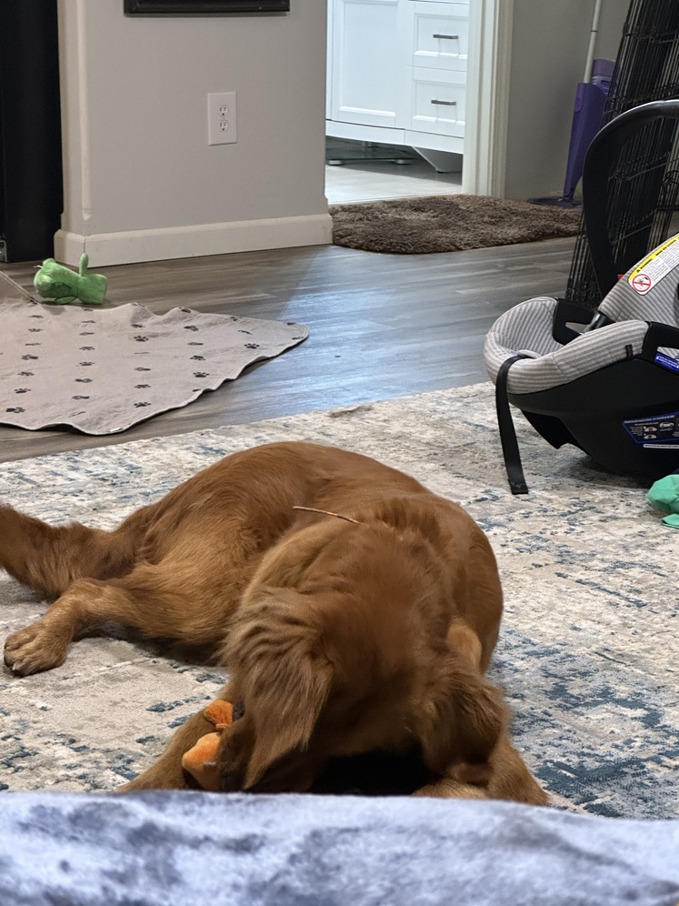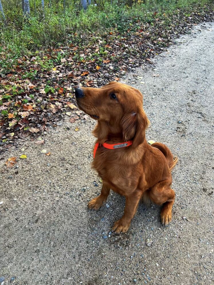 AKC Adult Red Golden Retriever. Willow is a 5 year old sweetheart. She was originally trained as a bird dog but was too layed back. She preferred to cuddle or play with her toys by a warm fire. She got her tail caught in the door last year and the vet had to make it just a stub. She now is a cuddle bug with no tail to get in the way.