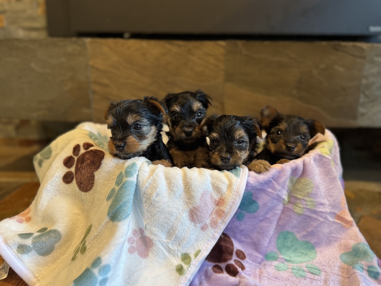 Yorkie puppies for sell born 9/5/25 will be ready for their new homes November 1st. Shots scheduled for this week, deworming in the process, tails docked, and dew claws done. Four girls excited to be part of your family. I posted a picture of sister from last litter, mom, and dad. Please let us know if you have any questions. Price reduction from previous add, same puppies. Please let us know if you have any further questions or would like to meet them. You can also email us