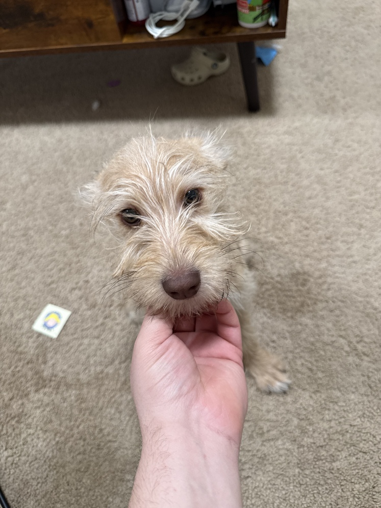 Purebred miniature schnauzer mom is liver color and dad is all white we own both parents. The Puppy was born on October 1st he is currently 5 moths old they is ready for his new home his tail is docked and he has first shots and he has a small starter kit to take home We have one male golden colored