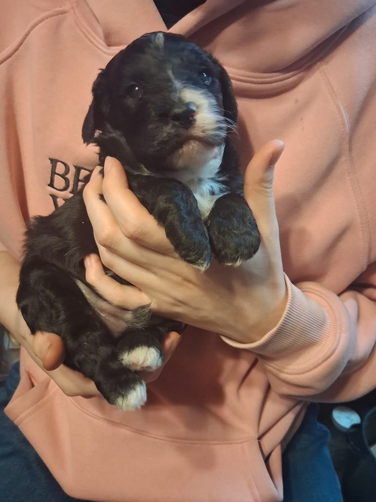 We have a Springer Doodle male puppy! Taking deposit now! He is a sweet boy. And so smart. Mom is AKC English Springer Spaniel and dad is mini poodle. Both have awesome personalities. Mom is about 40 libs and dad is 12 lbs. Pup should be hypoallergenic. He comes well socialized Comes with shots. Comes with a blanket and toy. Tail docked and dew claws done. Reserve this sweet boy for $200 with rest due at pickup. Ready November 26th before Thanksgiving!