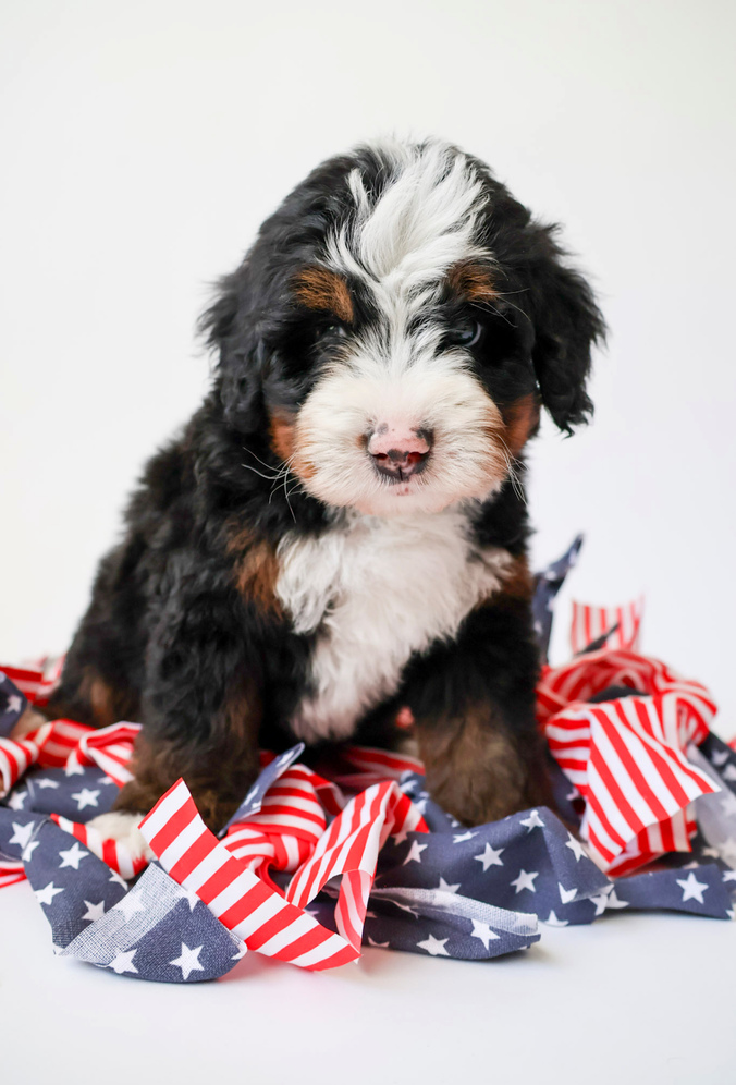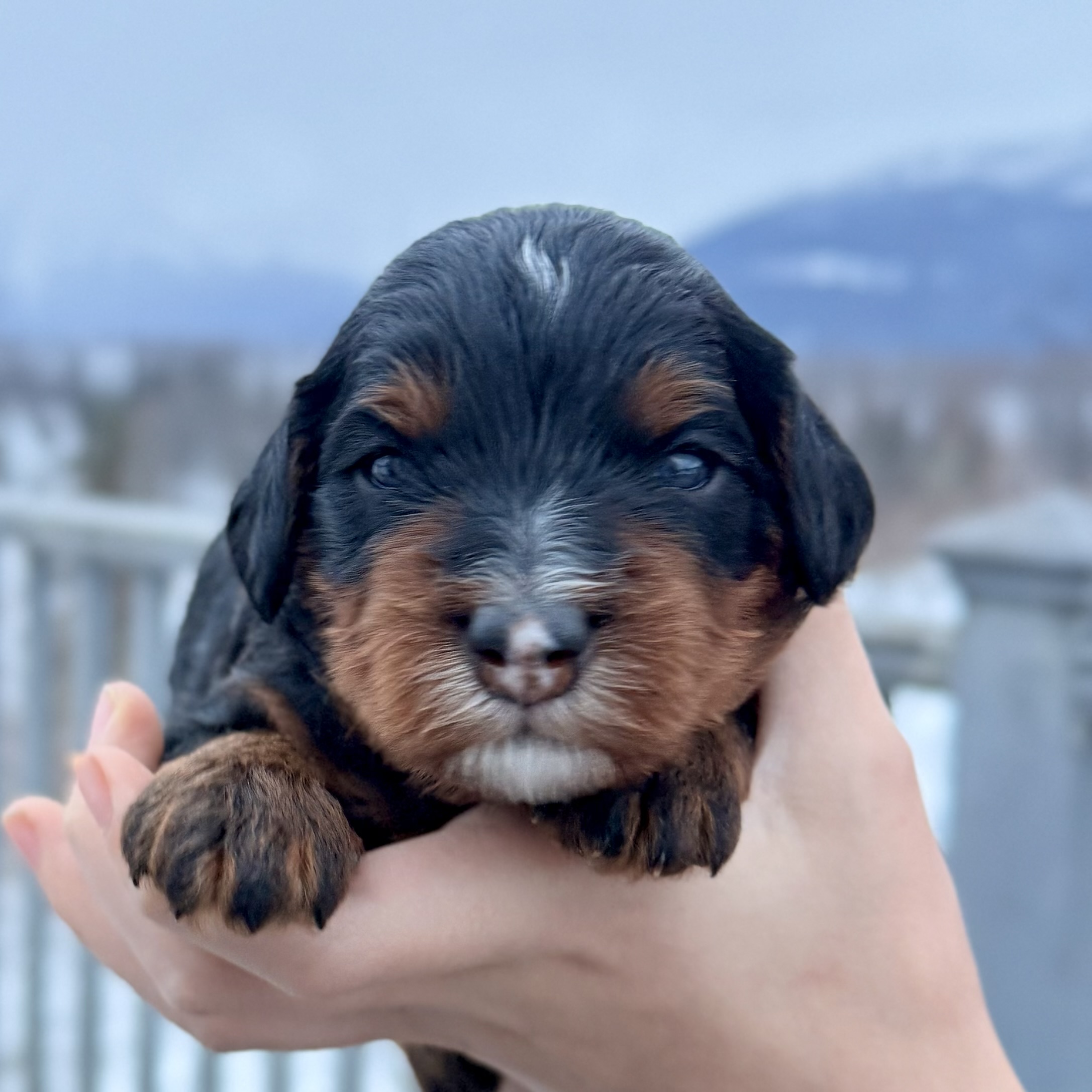 We have an adorable litter of multigenerational mini Bernedoodle litter, born January 15. They will be ready to go home mid March.