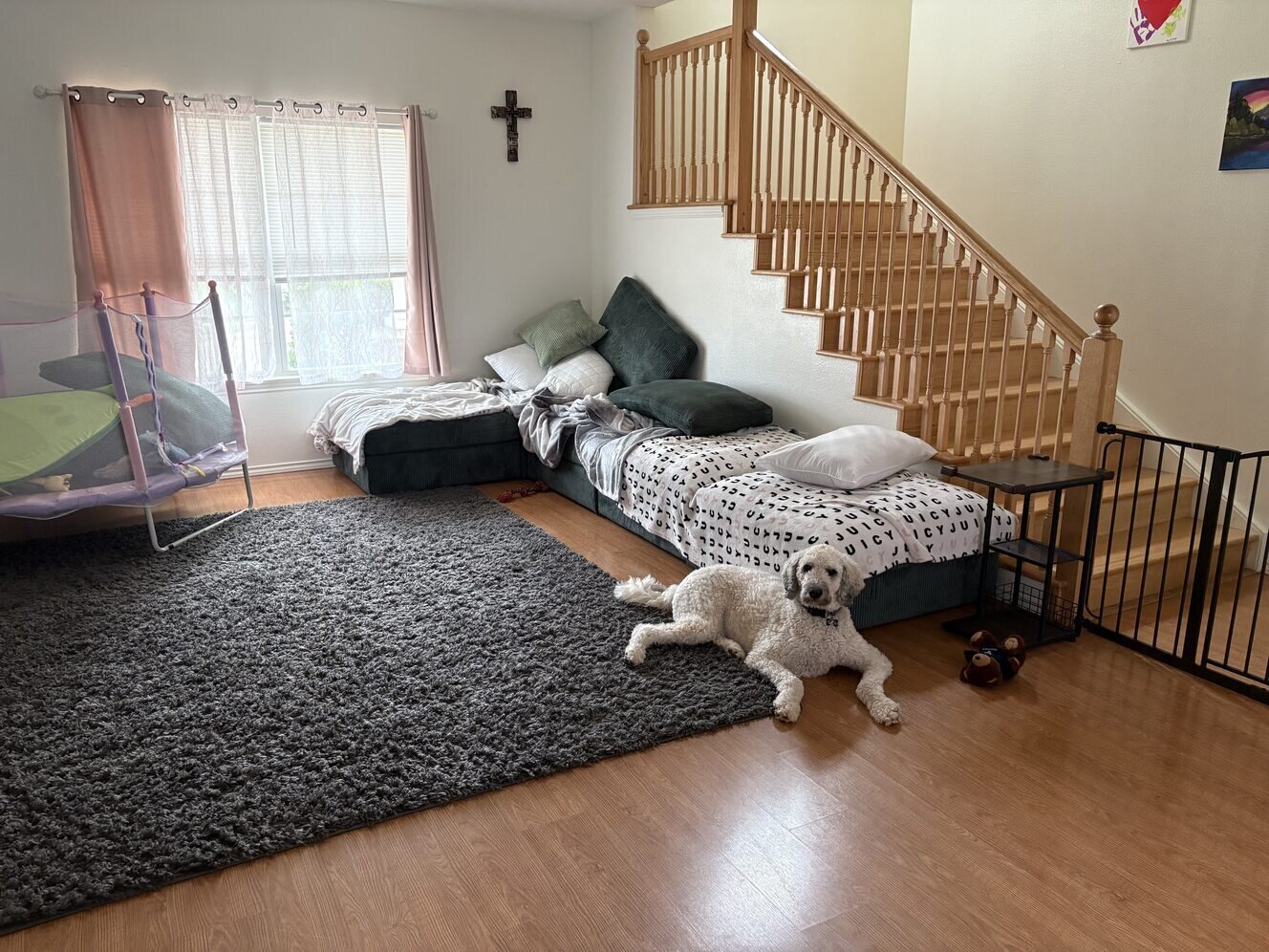 2year Doberman Doodle 80Lbs. Happy is a 2-year-old boy who lives up to his name. He’s sweet, playful, and loves being the center of attention. Our growing family keeps us busy, and we can’t give him the time or exercise he deserves. We’re looking for someone who can offer him love, attention, and consistent training. Happy is house trained, smart, and great with our cat. He’s done well with our daughter but can be nervous around strangers or startled by quick movements, so we recommend a home without small kids. He gets along with dogs his size and just wants to be loved. We’re open to a trial period and will take him back if it’s not the right fit. Happy is a wonderful dog who deserves a home where he can get the time and care he needs. Neutered and up to date on all shots. No health concerns
