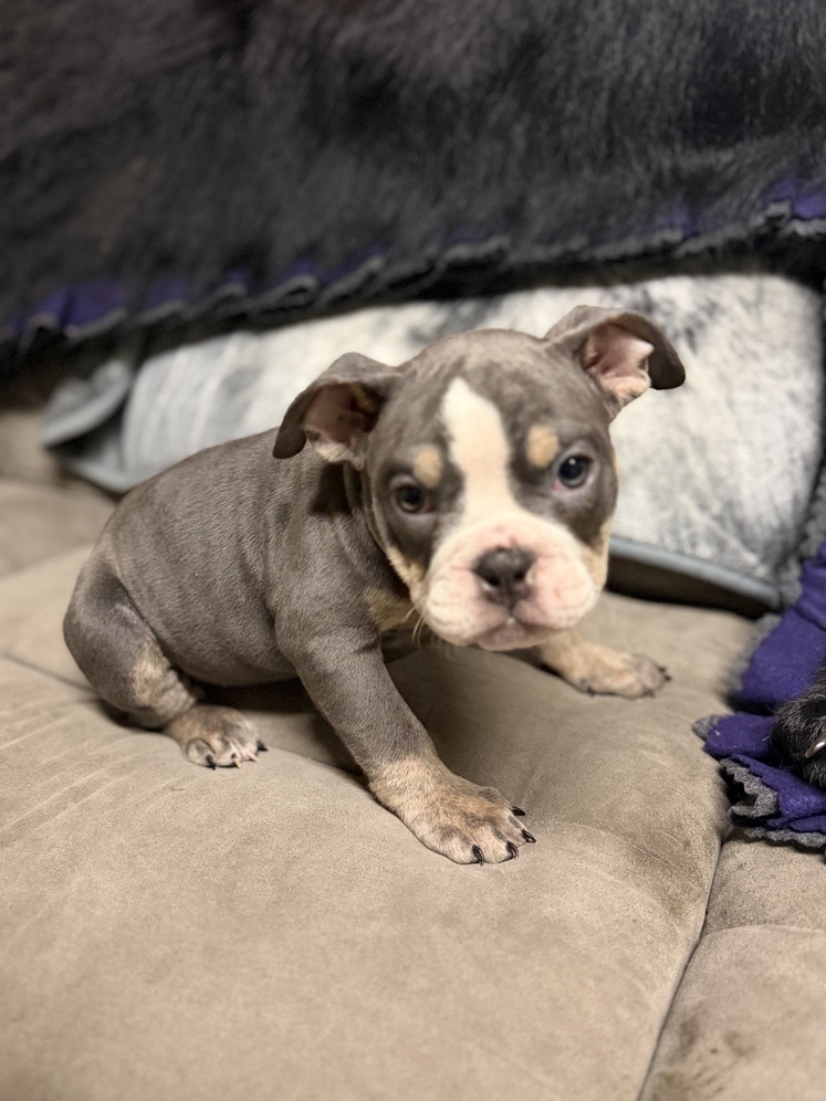 Olde English Bulldogge Puppies IOEBA Registered $1200. We have 5 beautiful Olde English Bulldogge puppies. all IOEBA registered and ready now for their new homes. This litter includes. 5 Females Blue Trindle coat patterns (hard to find colors!). Each puppy goes home with. IOEBA registration Vet check First shots Dewormed Health record Started on potty training Raised indoors & socialized with kids. Parents have excellent temperament and clean structure no breathing issues. no aggression. and great familyfriendly personalities. Pricing. $2.000 each. FaceTime / video calls available. Serious inquiries only. Message me for individual pics or to reserve your puppy!