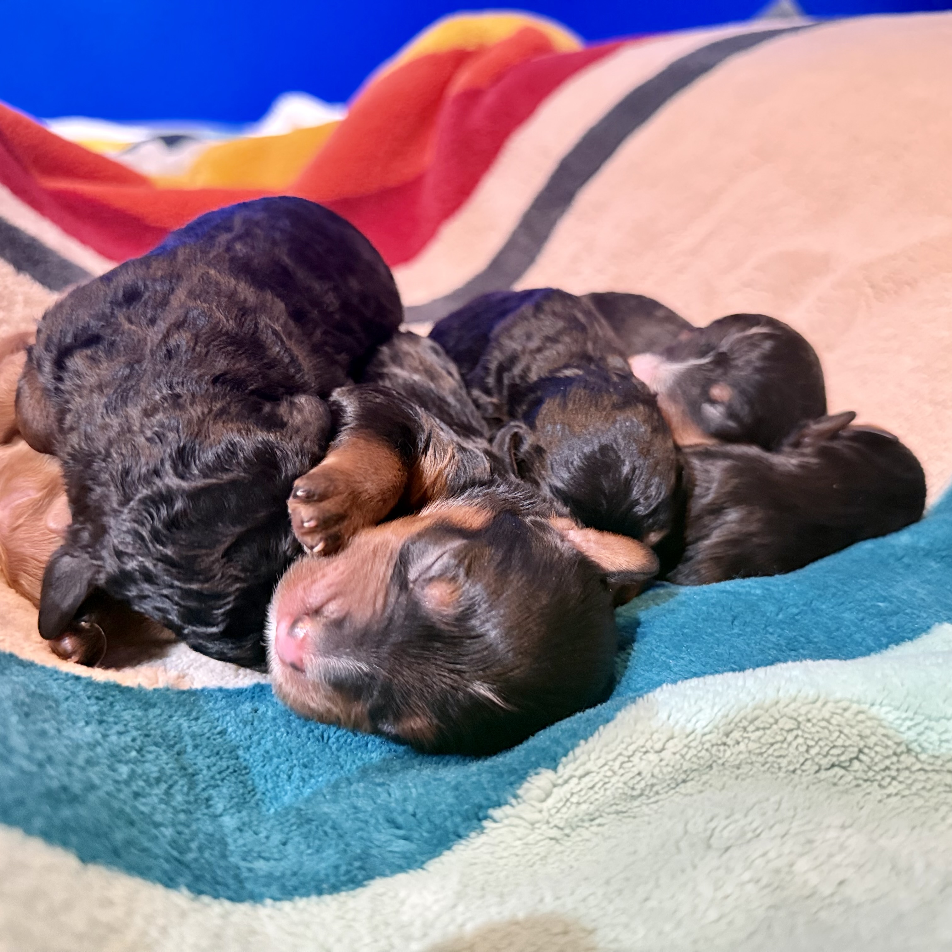 Meet our adorable multigenerational mini Bernedoodle puppies! We have an adorable litter, born January 15th and they will be ready in March. These sweet pups are soft, fluffy, and ready to join your family. With over 30 years of breeding experience, we raise them in our loving home with kids and lots of cuddles. They’re well-socialized, handled daily, and come with a one-year health guarantee.