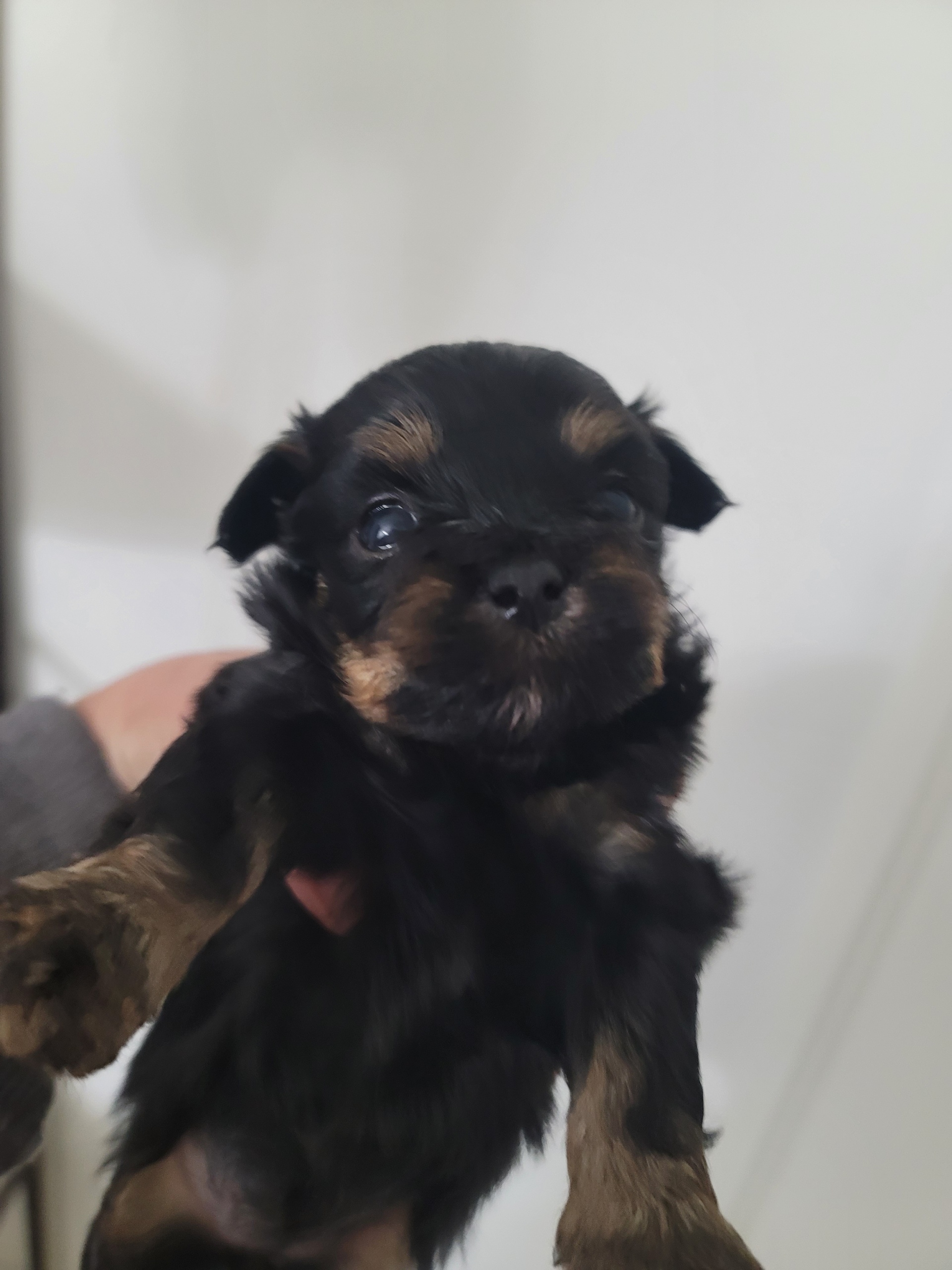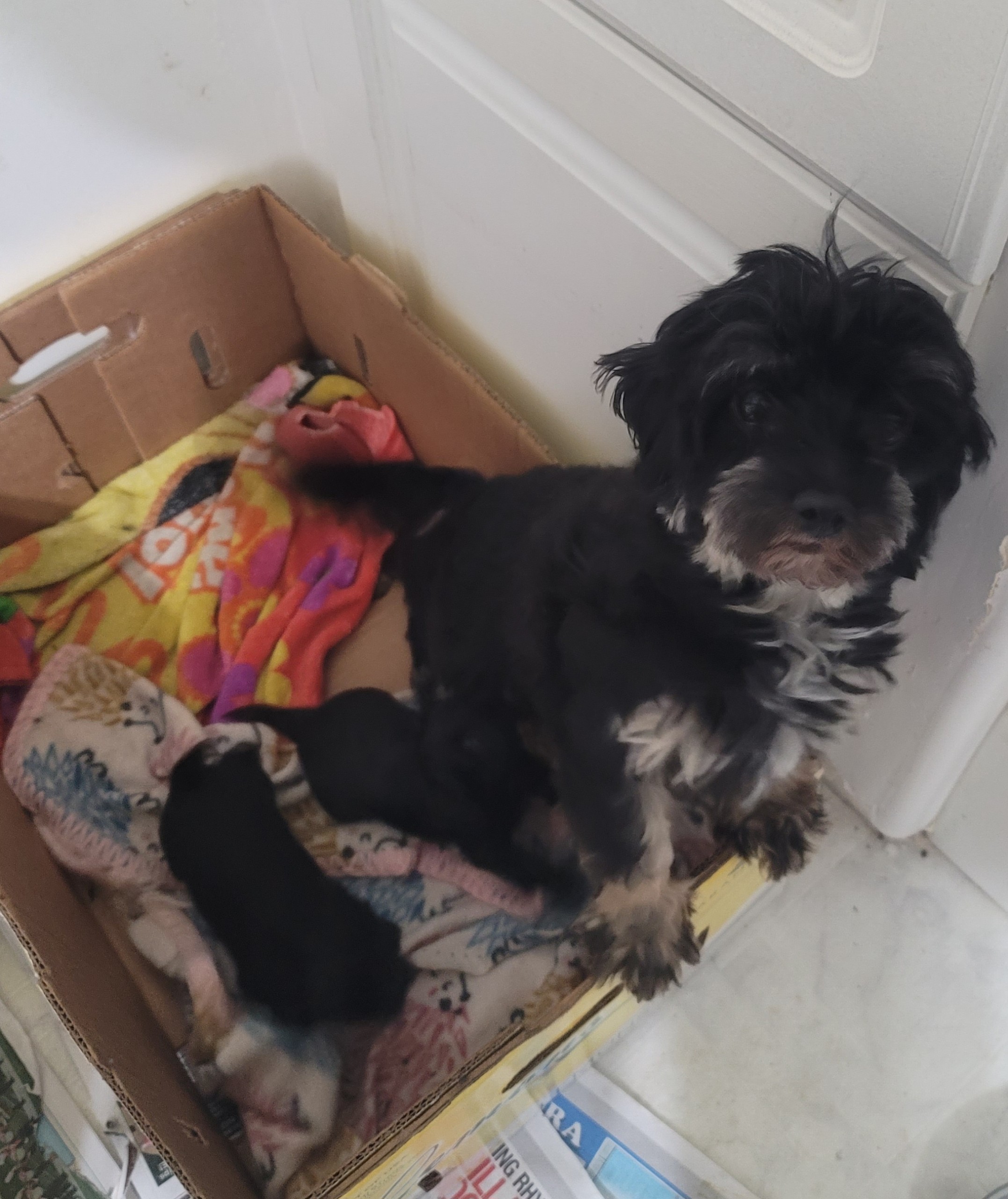 Three yorkiepoo puppies that will be toy sized. They are 4 weeks old. Two are phantom coloring like their momma, and one male is black with a white blaze. One female and two males. Taking deposits to hold until they are 8 weeks old. Female is $1,600, and males are $1,200. Senior and military discounts. Please call or text only.