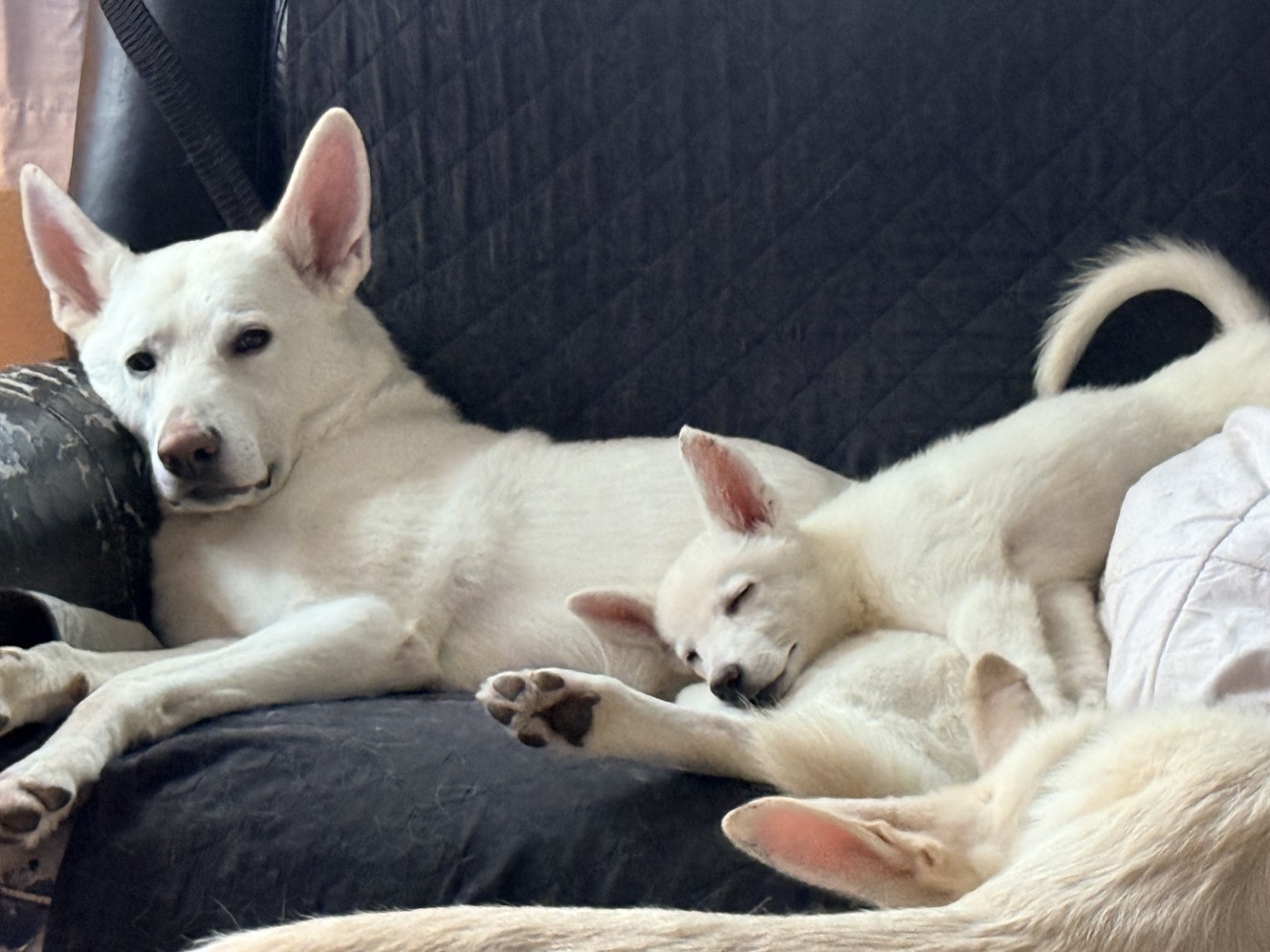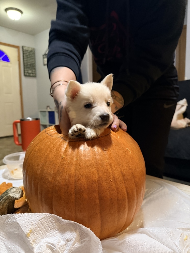 We have a puppy from our 09/11/2025 litter that was suppose to be picked up this week, but that has fallen through. She has not had any shots as the new owner was going to do this. She is super sweet, and good with our other dogs, cat, and small children. She’s not fully house broken, but is good in the kennel. She was the runt of the litter, but seems to be thriving and growing well now. Picture of mom and dad included. Please text as that’s the easiest way to get ahold of me.