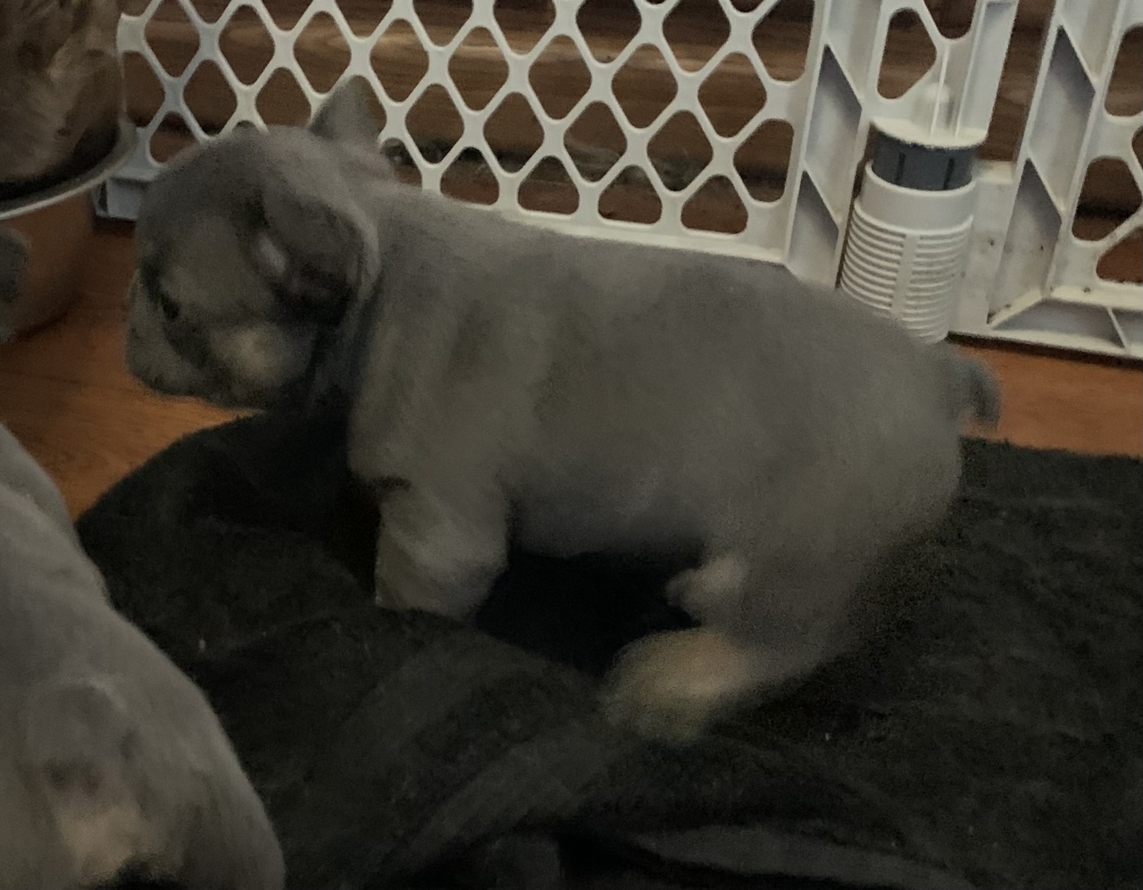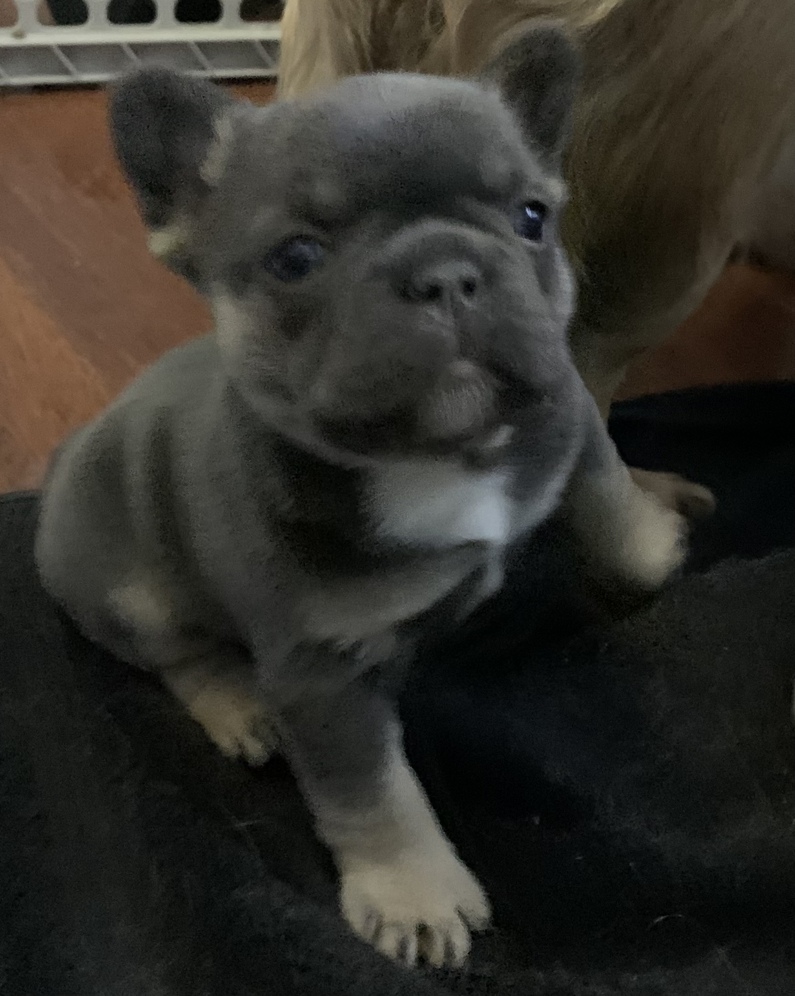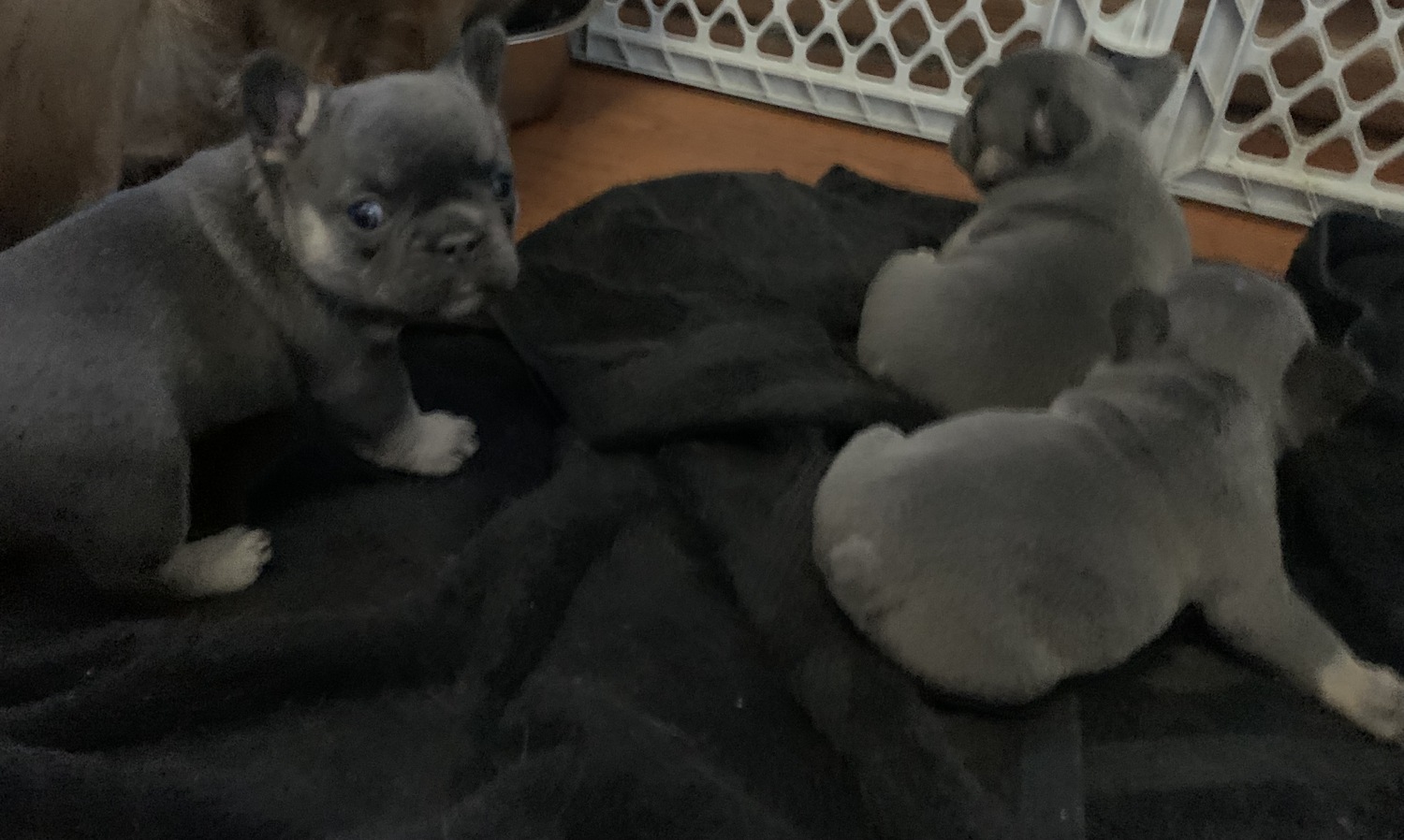 Three Beautiful female blue frenchies with tan points. Born 12-11-2025, will be ready end of January. Dad is lilac, mom is visual fluffy. Super healthy, strong genetics, ultra cute! Asking $2200